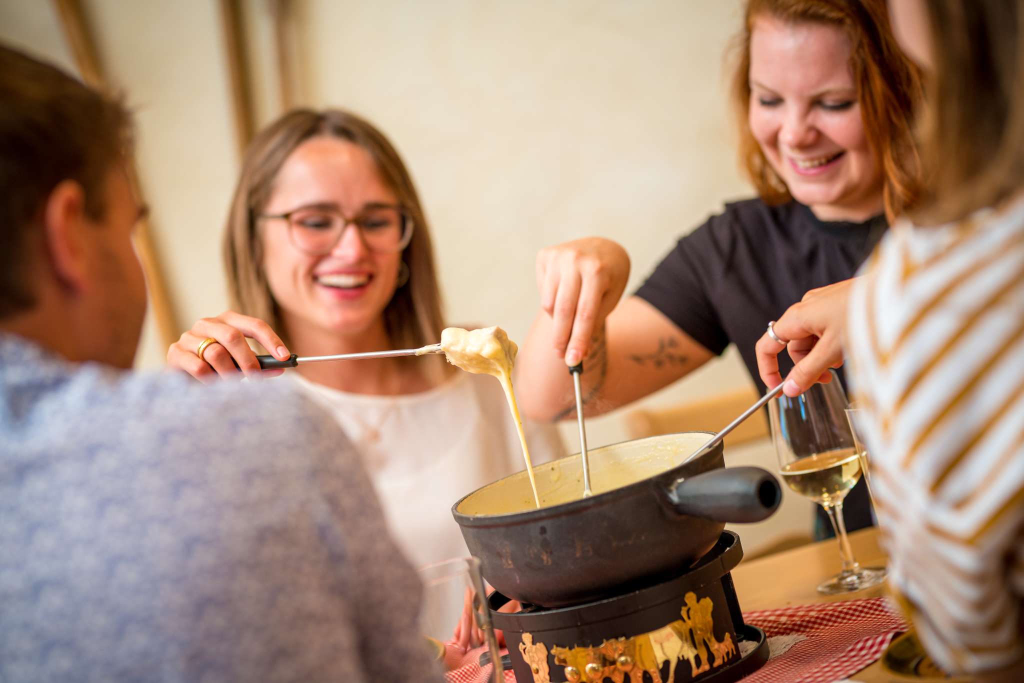 Im Restaurant fühlt man sich sofort wohl und kann täglich durchgehend warm essen. Käse ist natürlich der Trumpf auf der Speisekarte. Zudem gibt es jeden Sonntagmorgen ein reichhaltiges Frühstücksbuffet. Und auch für jene, die gerne selber kochen, bietet das Höckli eine Attraktion: Im Käsekessi können die Besucherinnen und Besucher Käsehörnli zubereiten.