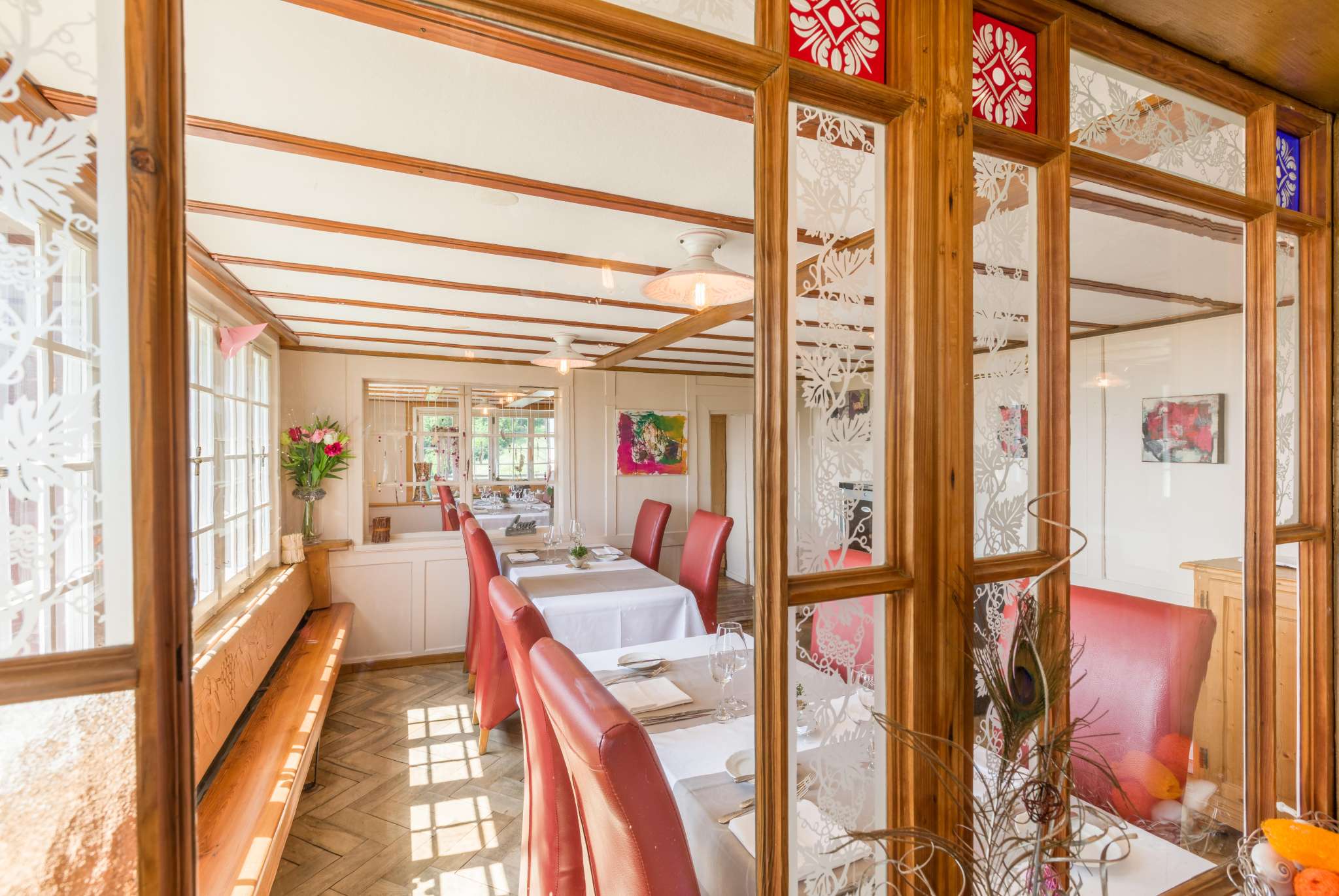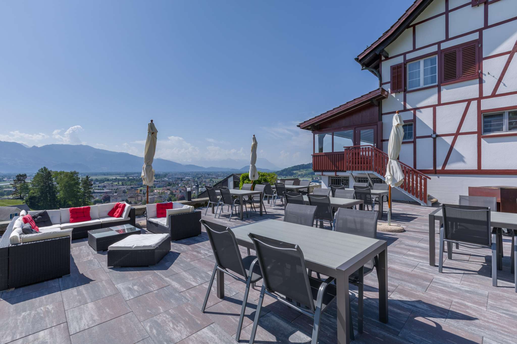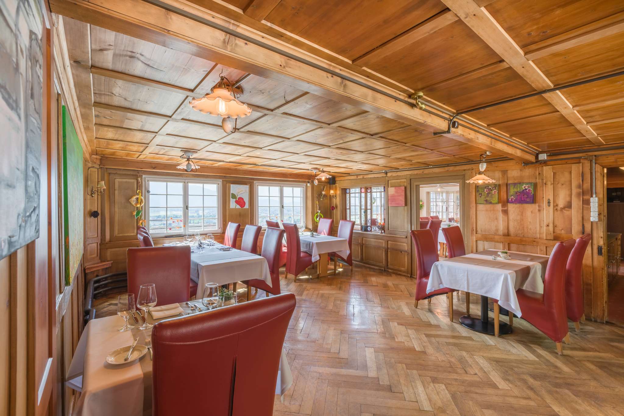 Umgeben von traumhaften Reben lädt das besondere Ambiente, welches Modernes und Historisches miteinander verbindet im Restaurant Burg in Au zum Verweilen für gemütliche Stunden ein.