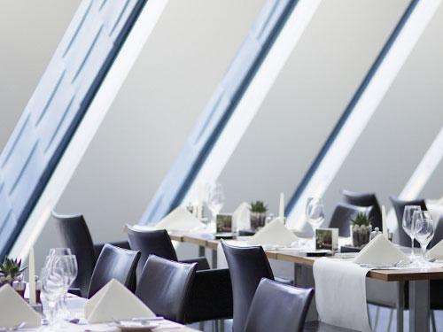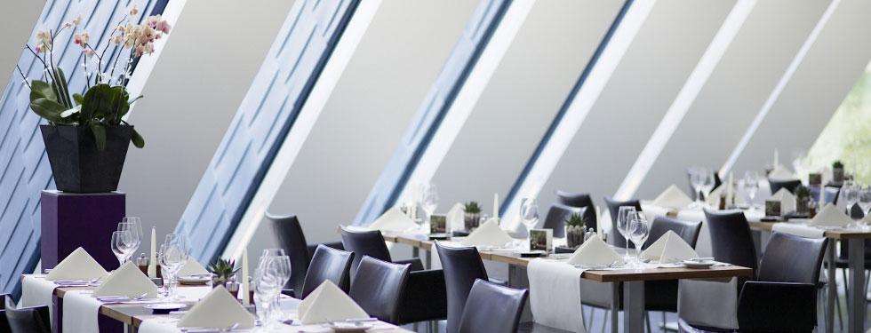 Der Ausblick auf alle Seiten wechselt immer wieder durch den Lichteinfall und zaubert eine einmalige Atmosphäre. Der ideale Raum für ein festliches Bankett.