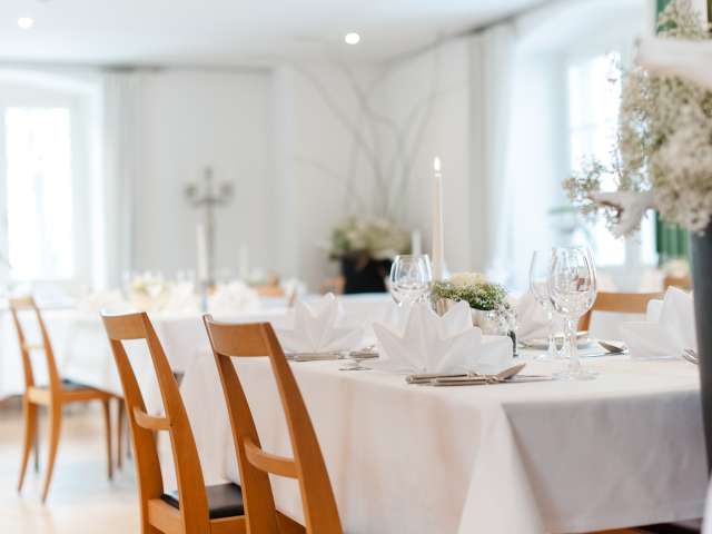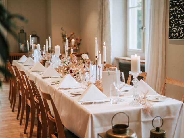 Das Restaurant bietet eine Vielzahl von vegetarischen Gerichten an und auch ein veganes Menu ist immer erhältlich. Dazwischen Kaffee mit hausgemachten Blechkuchen, einen «Flade» wie man hier sagt, sowie ausgesuchte Bio-Tees. Das Restaurant Schloss Wartegg ist sehr stark regional verankert und bezieht die Produkte von regionalen Biolieferanten.