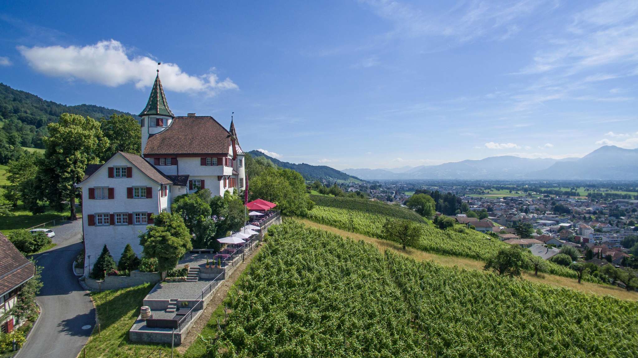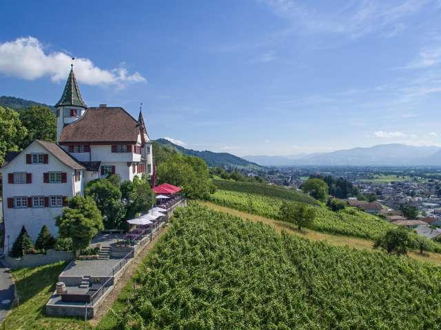 Schloss Weinstein ist heute ein Ort, an dem Genuss, Geschichte und eine einzigartige Lage zusammenkommen. Hoch über den Rebbergen oberhalb von Marbach gelegen, bietet das Schloss einen beeindruckenden Ausblick über das Rheintal und lädt dazu ein, kulinarisch und landschaftlich eine Auszeit zu geniessen.