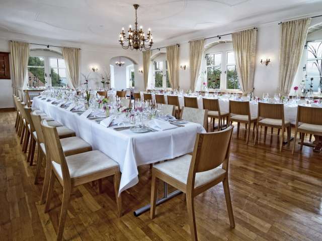 Die Geschichte des Schlosses reicht bis ins Jahr 1375 zurück und prägt bis heute die besondere Atmosphäre dieses Ortes. In der heutigen Schloss-Wirtschaft wird gutbürgerliche, saisonale Küche mit regionalem Bezug serviert – sei es im Restaurant oder auf der Sonnenterrasse mit Weitblick.