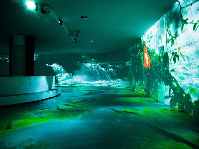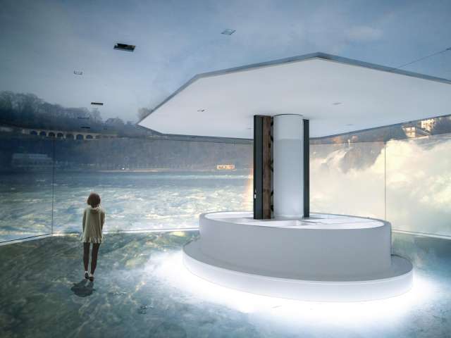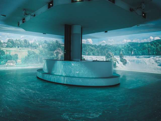 Direkt oberhalb des grössten Wasserfalls Europas liegt die erste immersive Spielstätte der Schweiz – die Immersive Art Hall Schaffhausen.