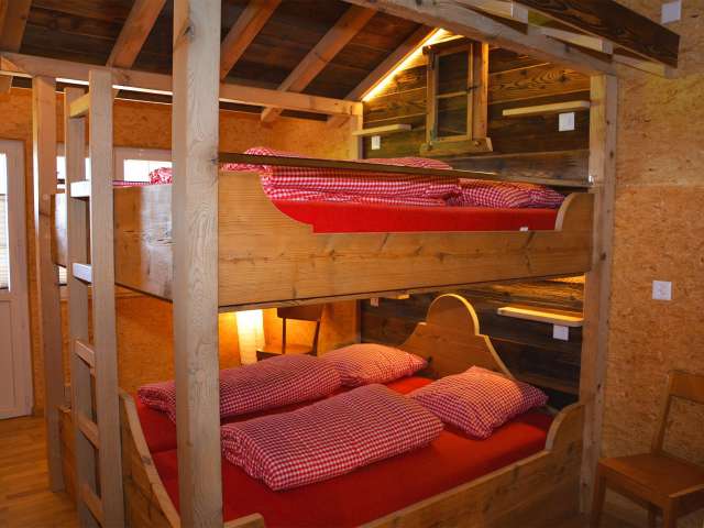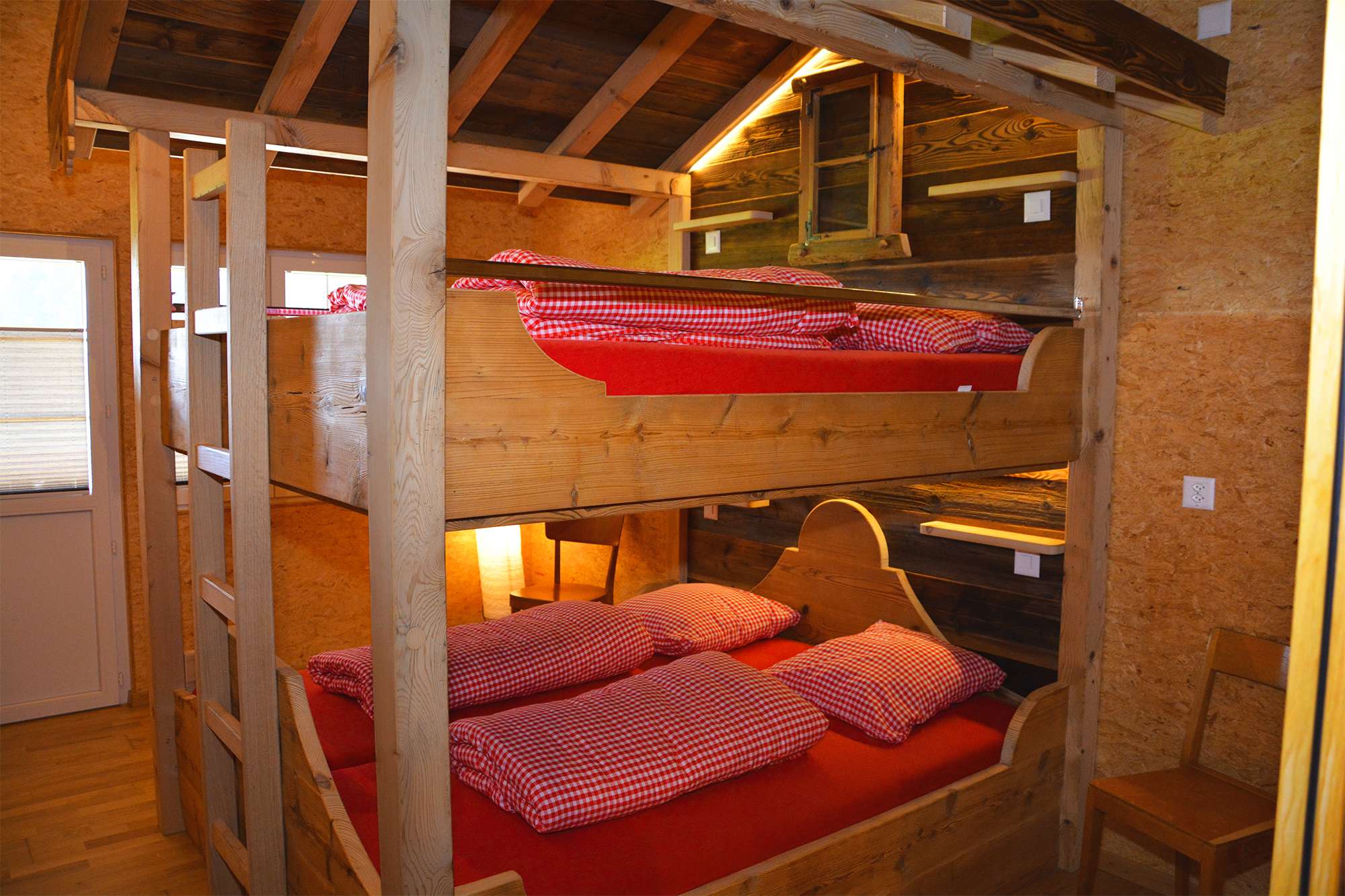 Der Ribelhof bietet ein Massenlager mit Total 49 Betten. Auch 4-Bettzimmer sind vorhanden.