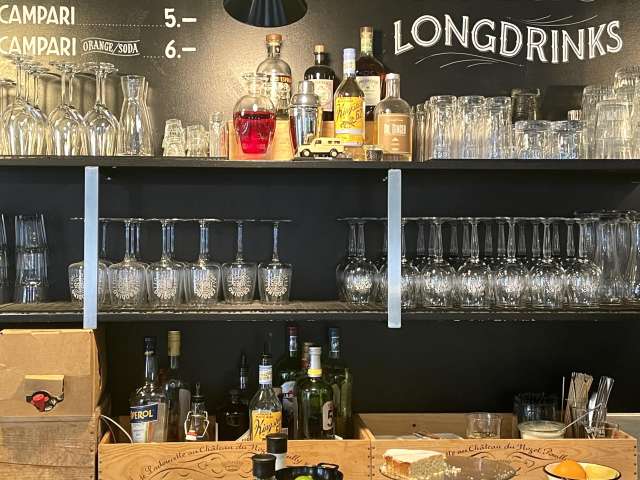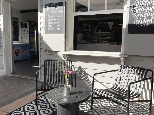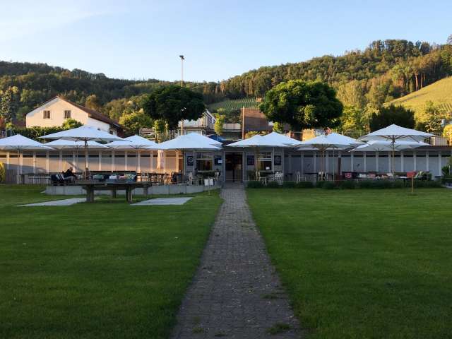 Strandbad mit einer grossen Badewiese direkt am Rhein und altem Baumbestand mit Kinderspielplatz, Kinderplanschbecken mit Sonnensegel, Sprungturm (nur bei Badeaufsicht zugänglich - an den Wochenenden und während den Sommerferien), Volleyballfeld sowie dem Café «Uferlos» mit vielen Köstlichkeiten und speziellem Ambiente.