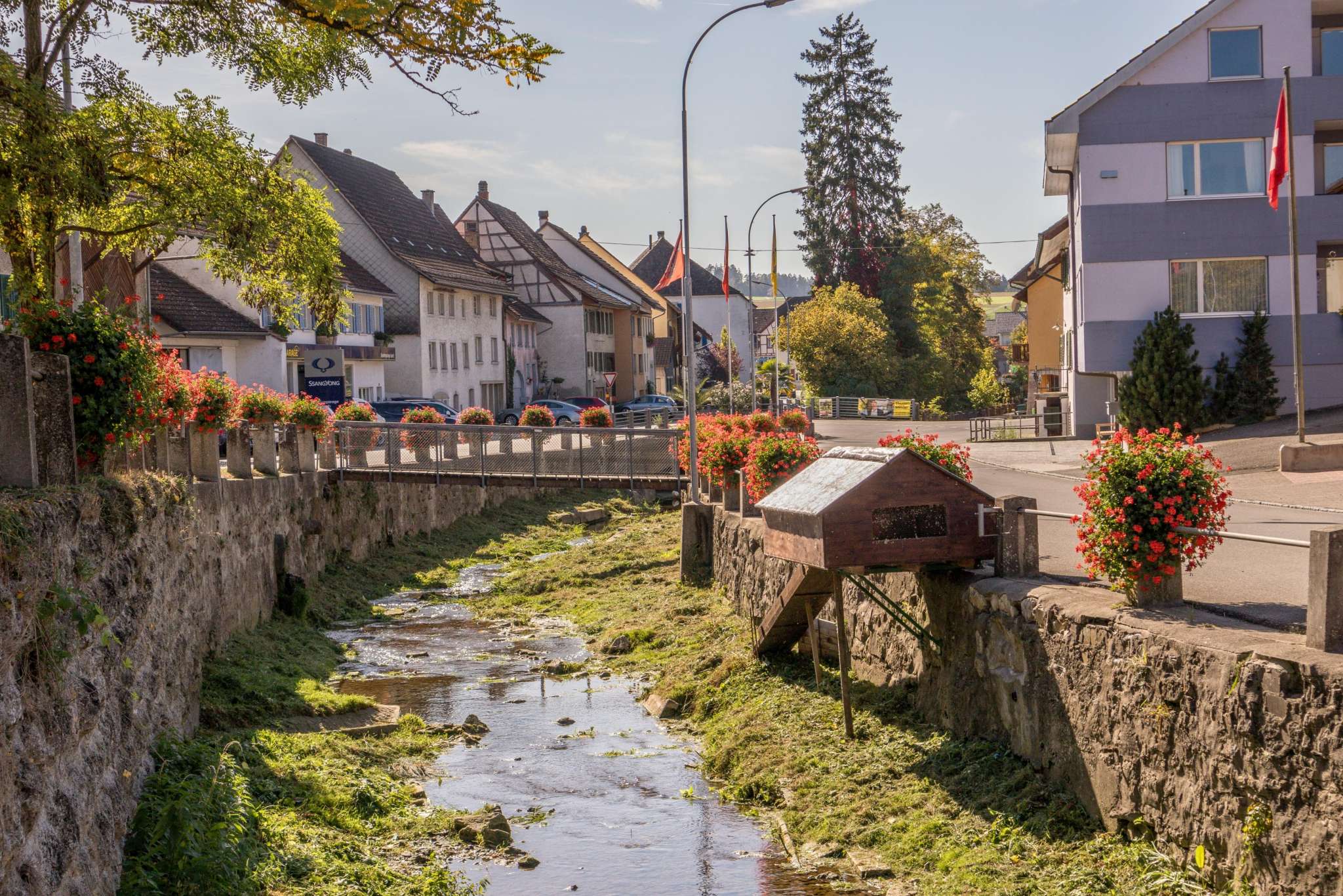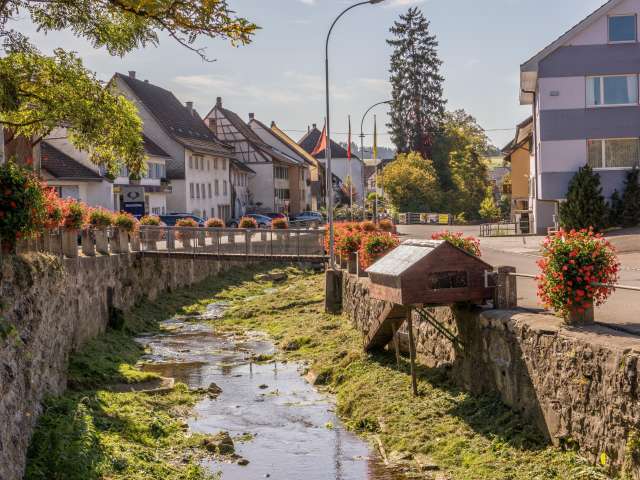 Der Dorfkern reizt mit seinen Fachwerkhäusern und wird dazu vom Dorfbach geprägt, der mitten durch Schleitheim fliesst, der über den Sommer mit Geranien und in der Adventszeit mit Christbäumen schön geschmückt wird.