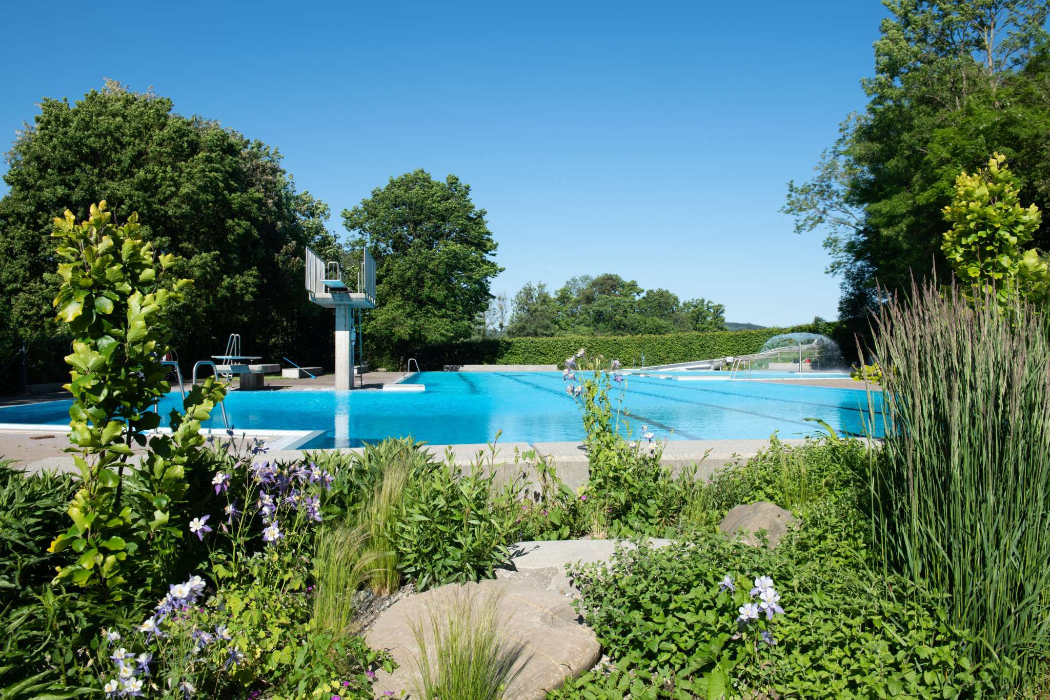 Das Schwimmbad liegt ideal am Dorfrand und ist gut mit den öffentlichen Verkehrsmitteln zu erreichen. Ein originelles Kinderplanschbecken, eine attraktive, ins natürliche Gelände eingefügte Rutschbahn, Tischfussball und Tischtennis sowie ein tolles Beach-Volleyball-Feld und eine grosszügige Rasenspielfläche sorgen für Abwechslung bei guter Übersicht.