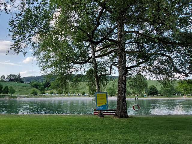 Dies ist ein Badeplatz im offenen, fliessenden Gewässer. Das Schwimmen ohne Erfahrung im Rhein ist nicht zu unterschätzen.