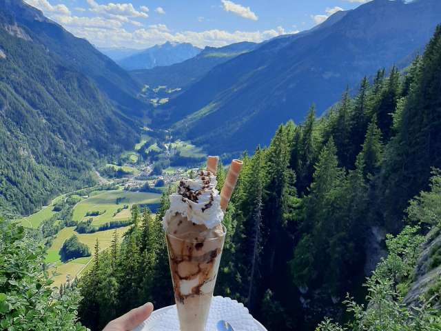 Nach der kurzen Bergfahrt von 6 Min. mit der Seilbahn gelangen Sie zu uns, direkt bei der Bergstation der Vättnerbergseilbahn. Wir belohnen Sie zuerst mit unserer Natur und der herrlichen Aussicht, danach können Sie von unserem Angebot profitieren, das zu 95 Prozent von einheimischen Lieferanten und Betrieben ist.