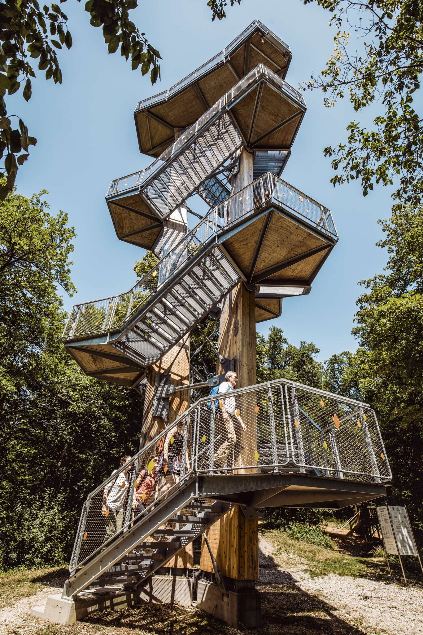 1872 wurde durch die Freunde der Naturbetrachtung ein erster Aussichtsturm auf dem Siblinger Schlossbuck erstellt. Bereits zehn Jahre später wurde er allerdings von einem Sturm weggefegt und gleichen Jahres durch einen 12 m hohen Eisenfachwerkbau ersetzt.