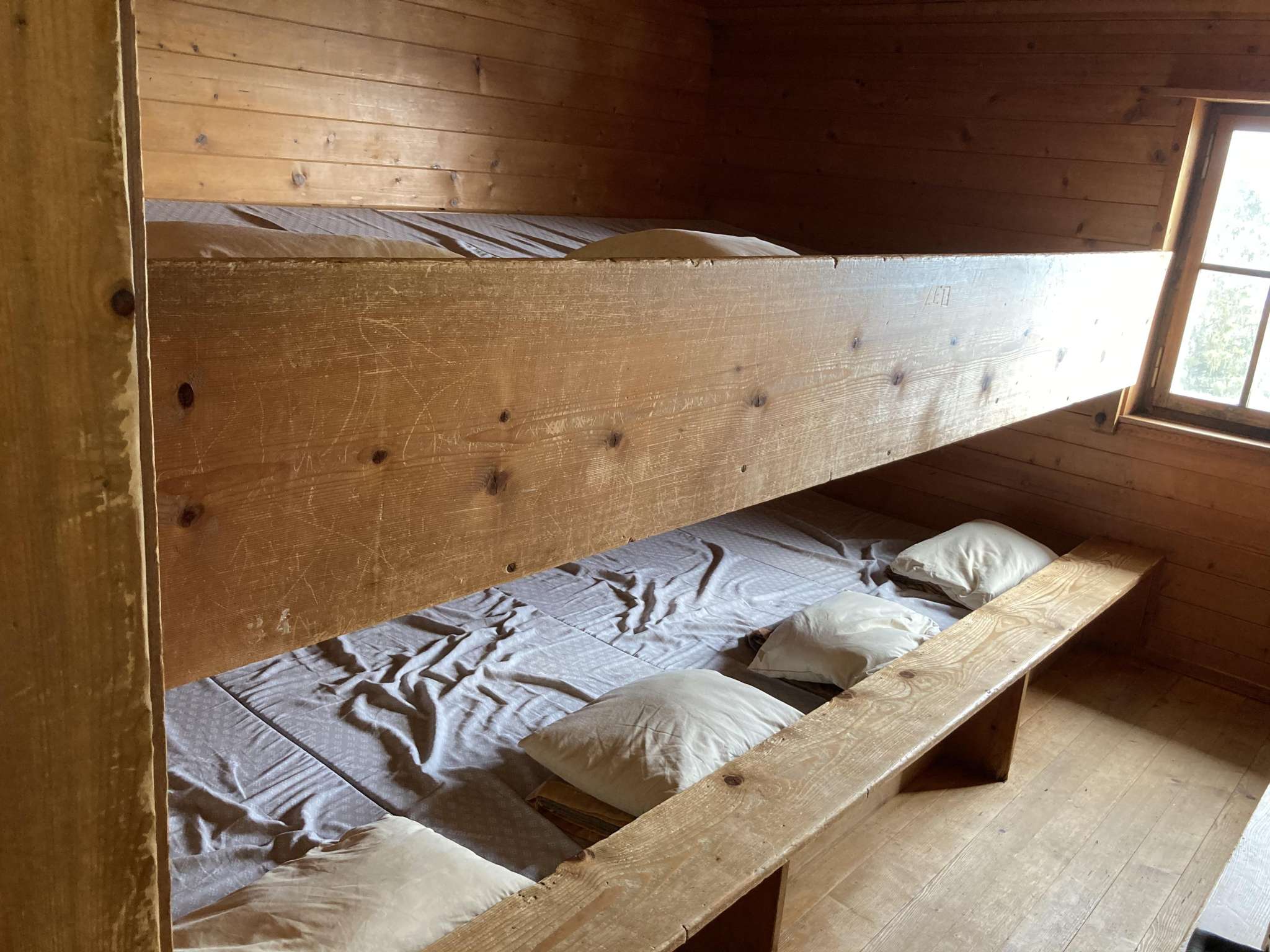 Kopfkissen und Wolldecken sind vorhanden.