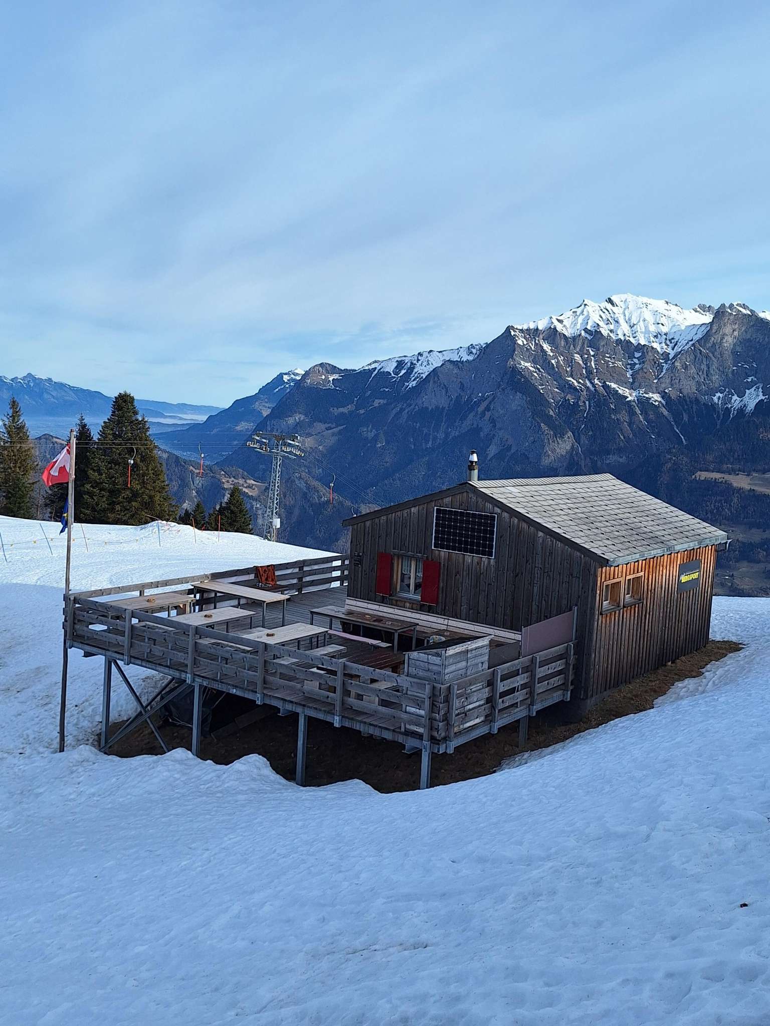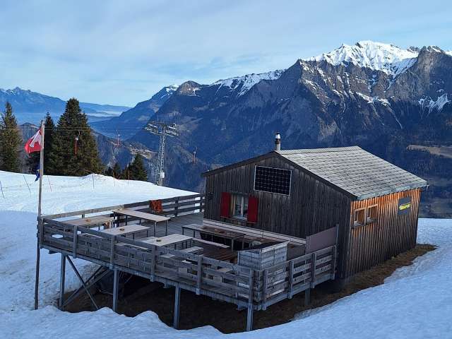 Die Hütte steht bei der Bergstation des Skilift Tristeli.