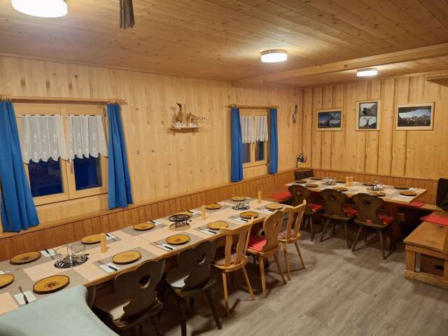 Bescheidene Hütte mit heimeliger Gaststube und sonniger Terrasse mit herrlicher Aussicht.
