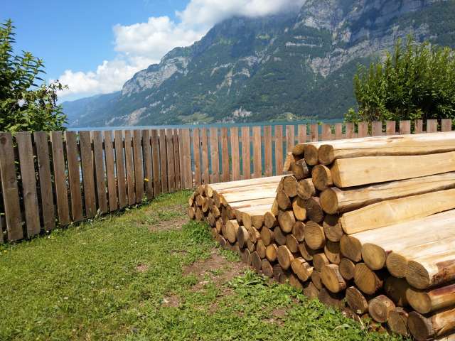 Zum Kapitän kannst du auf diesem Spielplatz gleich selber werden: am Steuerrad des kleinen Holzschiffes mit Balancierseilen, Rutsche und Wackelbrücke. Das kleine Karussell lässt die Welt ein bisschen schneller drehen, auf der Slackline erprobst du dein Gleichgewicht, durch Fernrohre erforschst du den Horizont und auf Baumstämmen sammelst du frische Kräfte. Die Rutschbahn führt die Kinder schnell vom Schiff herunter. Die Eltern können auf Holzbänken den Kindern beim Spielen zusehen oder den Ausblick auf den Walensee geniessen.