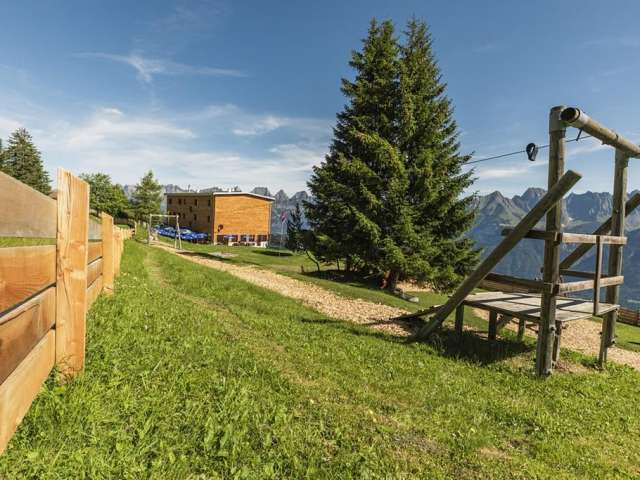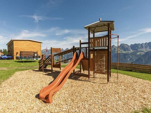 Der Spielplatz beim Restaurant Schönhalden bietet Kindern Abenteuer mit Zipline, Schaukeln und Trampolin. Eltern können von der Terrasse aus entspannt zusehen, während sie die Aussicht auf die umliegenden Berggipfel geniessen.
