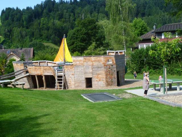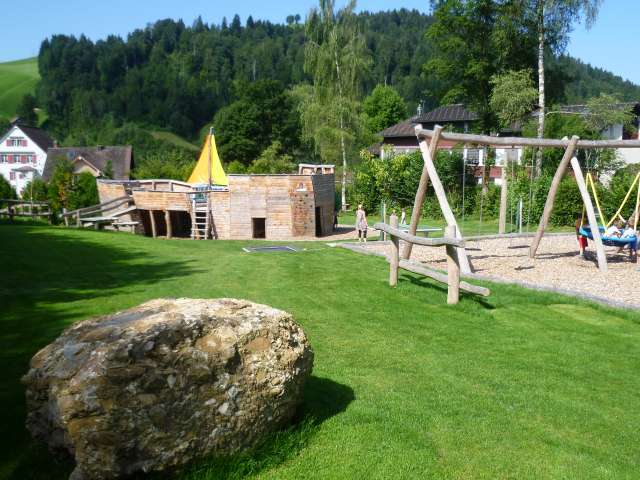 Auf dem Spielplatz in St.Peterzell, welcher sich direkt neben dem Schulareal befindet, können sich Kinder auf dem grossen Piratenschiff richtig austoben. Beim kleinen Parcours können kletterfreudige Kinder ihre Freude ausleben. Zwei schöne Sitzgelegenheiten laden zum Verweilen ein. Und damit der Hunger für alle gestillt werden kann, befindet sich direkt beim Spielplatz eine schöne Grillstelle. Für genügend Holz ist gesorgt. Geniessen Sie in Ruhe Ihr Grillgut und lauschen Sie dem kleinen Bach, der am Spielplatz vorbeiführt.