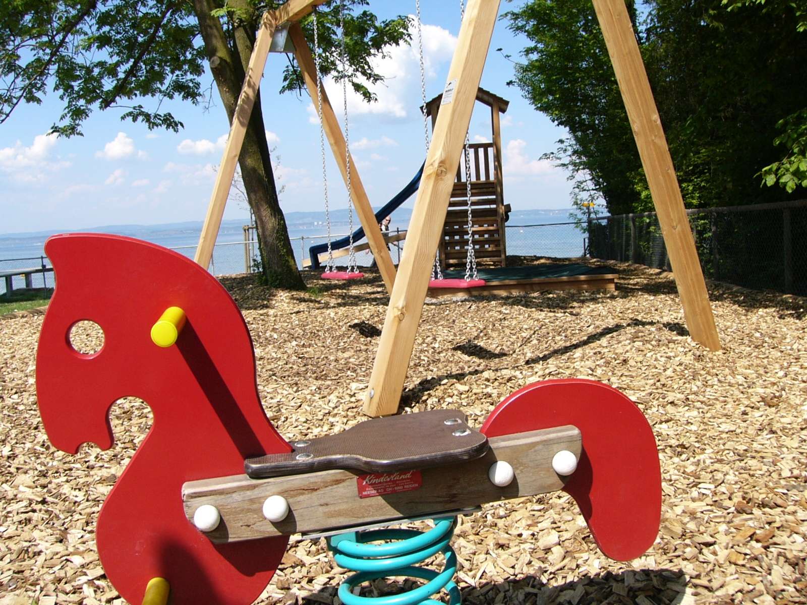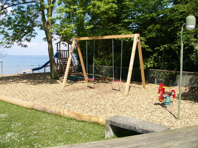 Den Kindern stehen verschiedene spannende Spielmöglichkeiten (Schaukel, Sandkasten, Rutsche, Wippe) zur Verfügung. Der klare See, die grosse Liegefläche und das Restaurant mit Terrasse laden die Erwachsenen zum Baden und Relaxen ein.