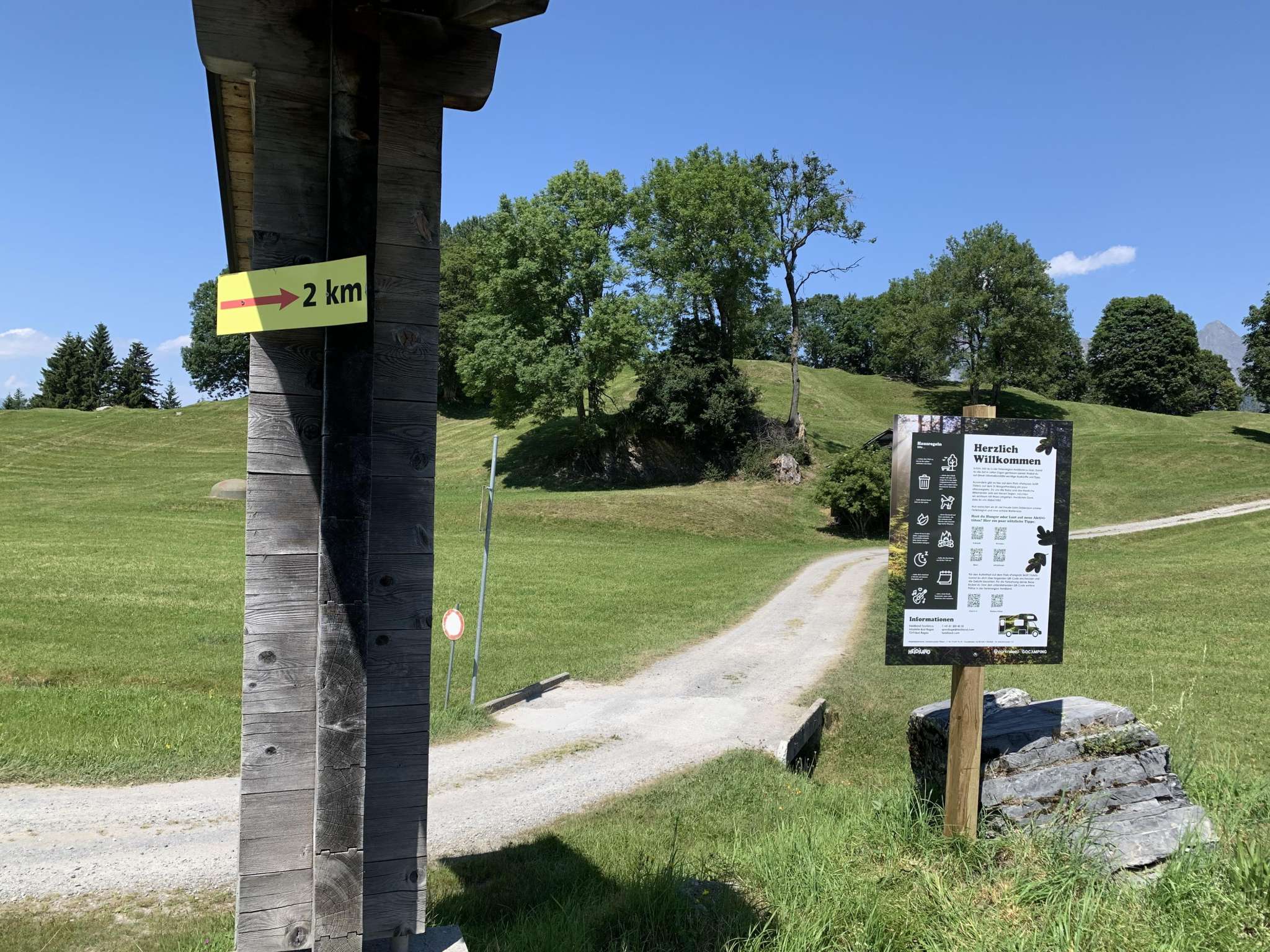 Der Stellplatz beim Skilift Tristeli auf dem St. Margrethenberg bietet im Sommer fünf Plätze für Camper. Auf 1 200 Metern Höhe gelegen, ist er ein idealer Ausgangspunkt für Wanderungen, etwa zur Aussichtsplattform Pizalun.