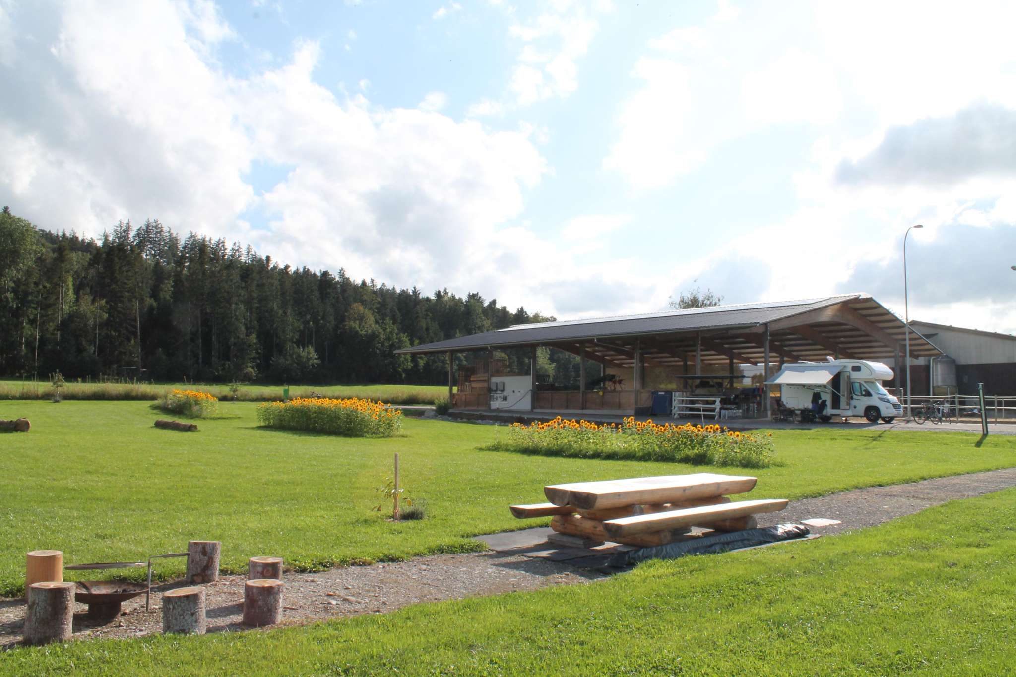 Der Stellplatz steht Erwachsenen mit Wohnmobilen zur Verfügung - in der Natur an ruhiger Lage. Vor den Stellplätzen wächst eine Blumenwiese und der Waldrand ist sehr nah. Ein Tisch lädt zum Verweilen ein.