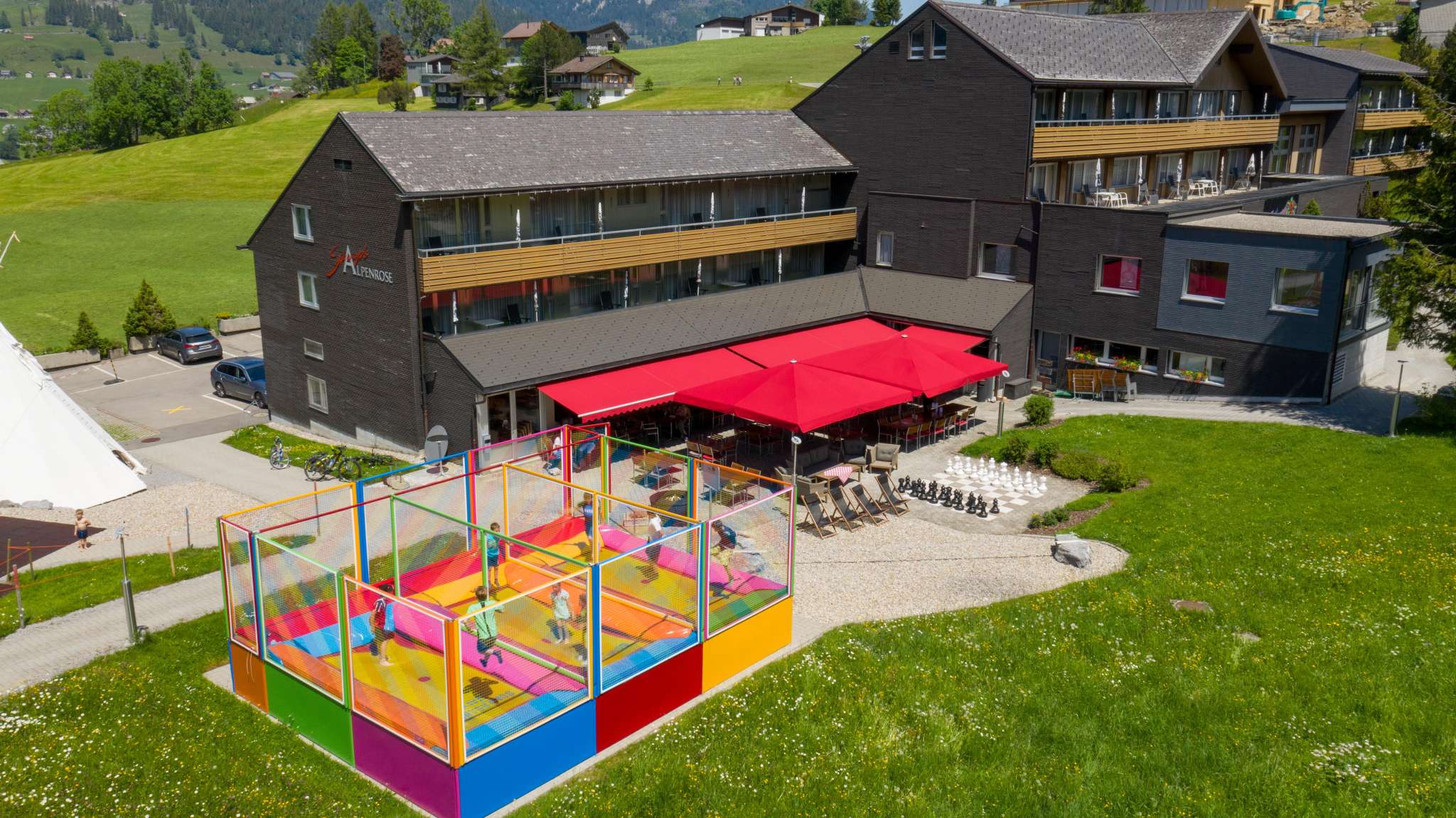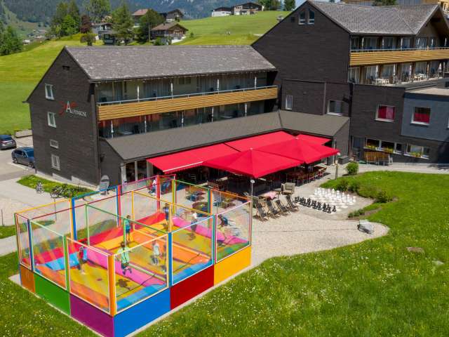 Auf dem sonnenbeschienenen Hochplateau am Schwendisee heisst Sie die Gastgeberfamilie Stump in 5. Generation herzlich Willkommen. Der Klangweg führt im Sommer zum Chäserrugg und weiter zu den Churfirsten, während der Alpstein mit uneingeschränkten Wanderungen an der Thur und bis zum Säntis lockt. Sonnenterrasse mit Kinderspielplatz und Trampolin laden zum Verweilen. Einzel-, Doppel- und Familienzimmer mit allem Komfort sind nach Süden ausgerichtet, Wellness mit Sauna, Dampfbad, Whirlpool und Fitnessraum sorgen für Entspannung wie Erholung. Stump’s Frischküche mit regionalen Culinarium-Produkten und Wild aus einheimischer Jagd sowie das Frühstück mit lokalen Broten und Käse von den Alpen bietet viel Hausgemachtes. Im Winter führen die Skipisten direkt vom Hotel zu den Bergbahnen und zur Skischule. Ein Hotelbus macht die Anbindung ans Tal, zur Eisbahn, Curling-Center, Schwimmbad, Einkaufsmöglichkeiten sowie Kulturveranstaltungen. Herzlich Willkommen am Fuss des Chäserrugg bei Stump’s in der Alpenrose.