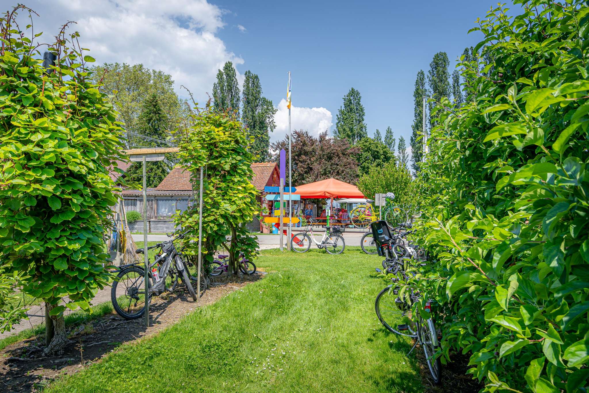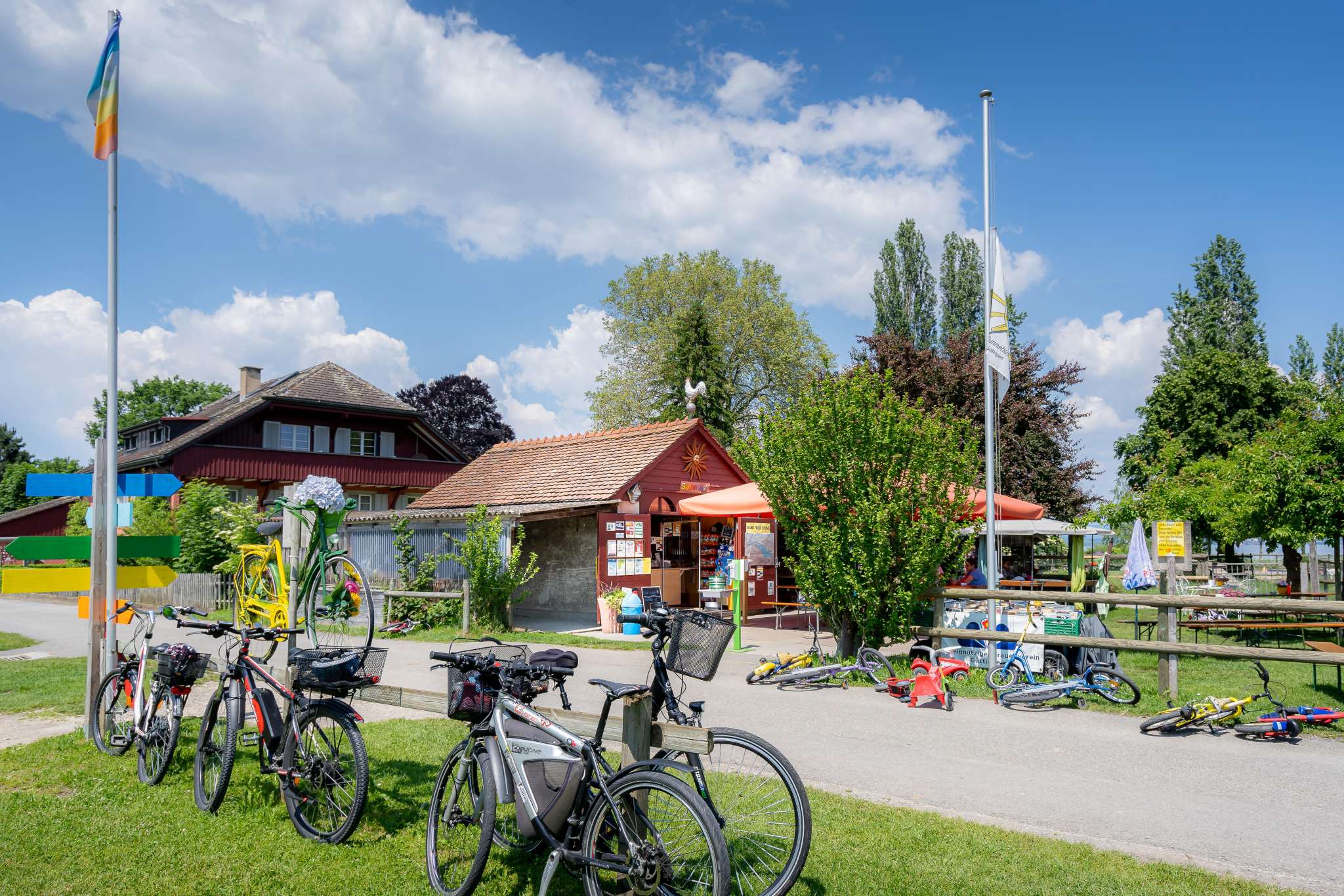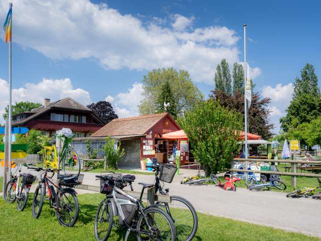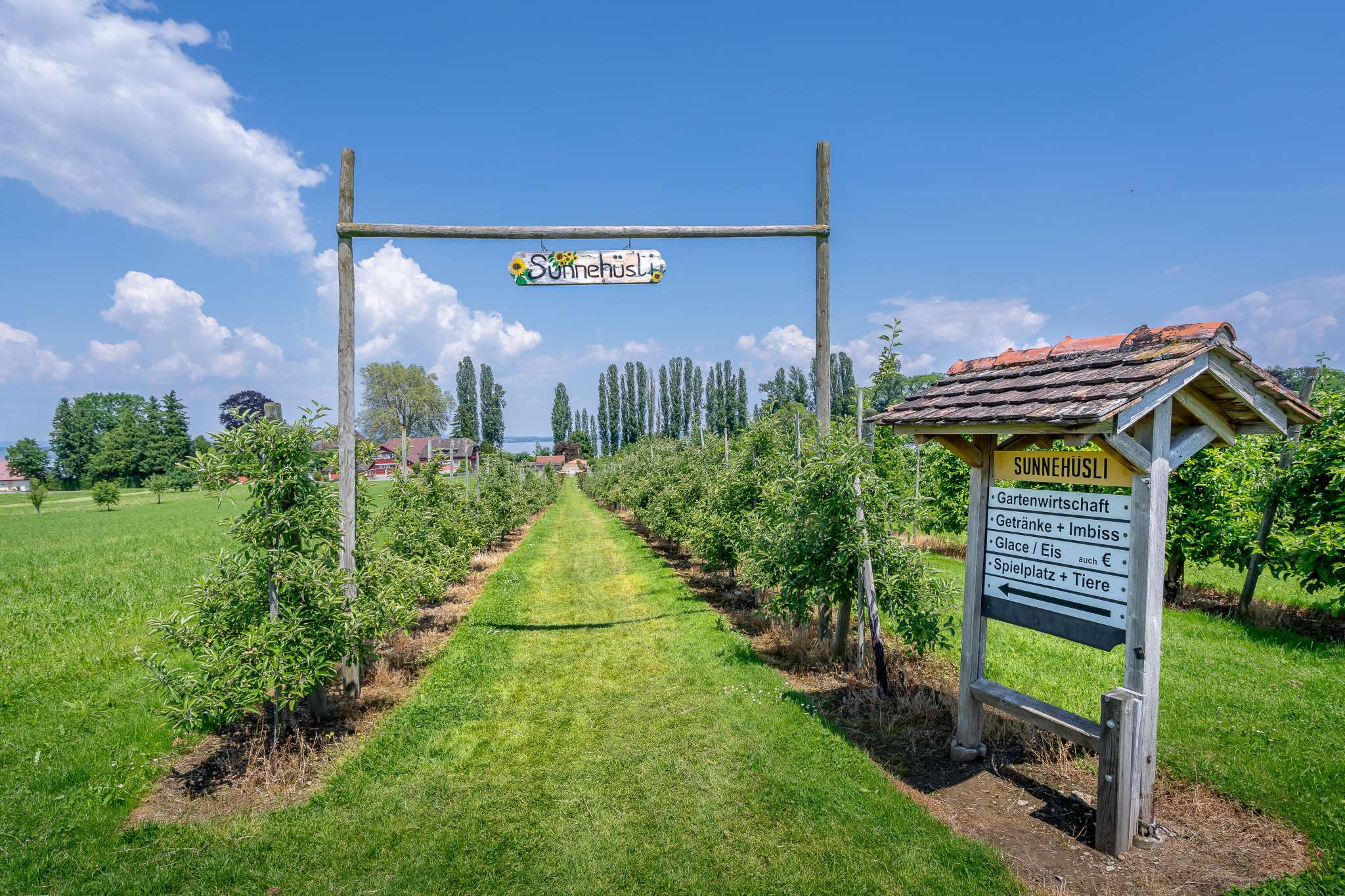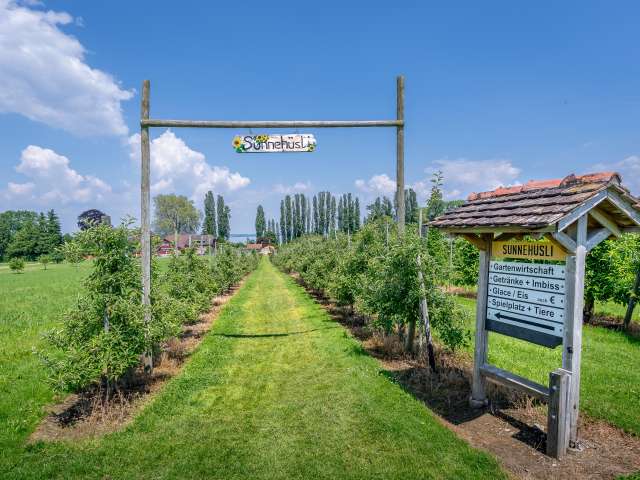 Zwischen Kreuzlingen und Romanshorn, direkt am Bodenseeuferweg, liegt das Sunnehüsli Güttingen. Auf dem grossem Spielplatz mit Hofladen pausieren Gross und Klein herrlich unkompliziert im Schatten von Apfelbäumen.