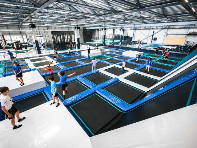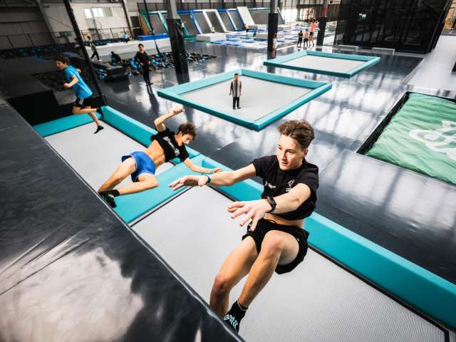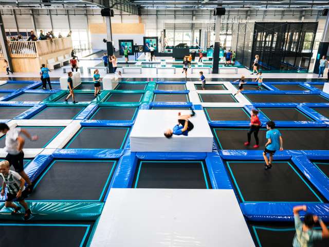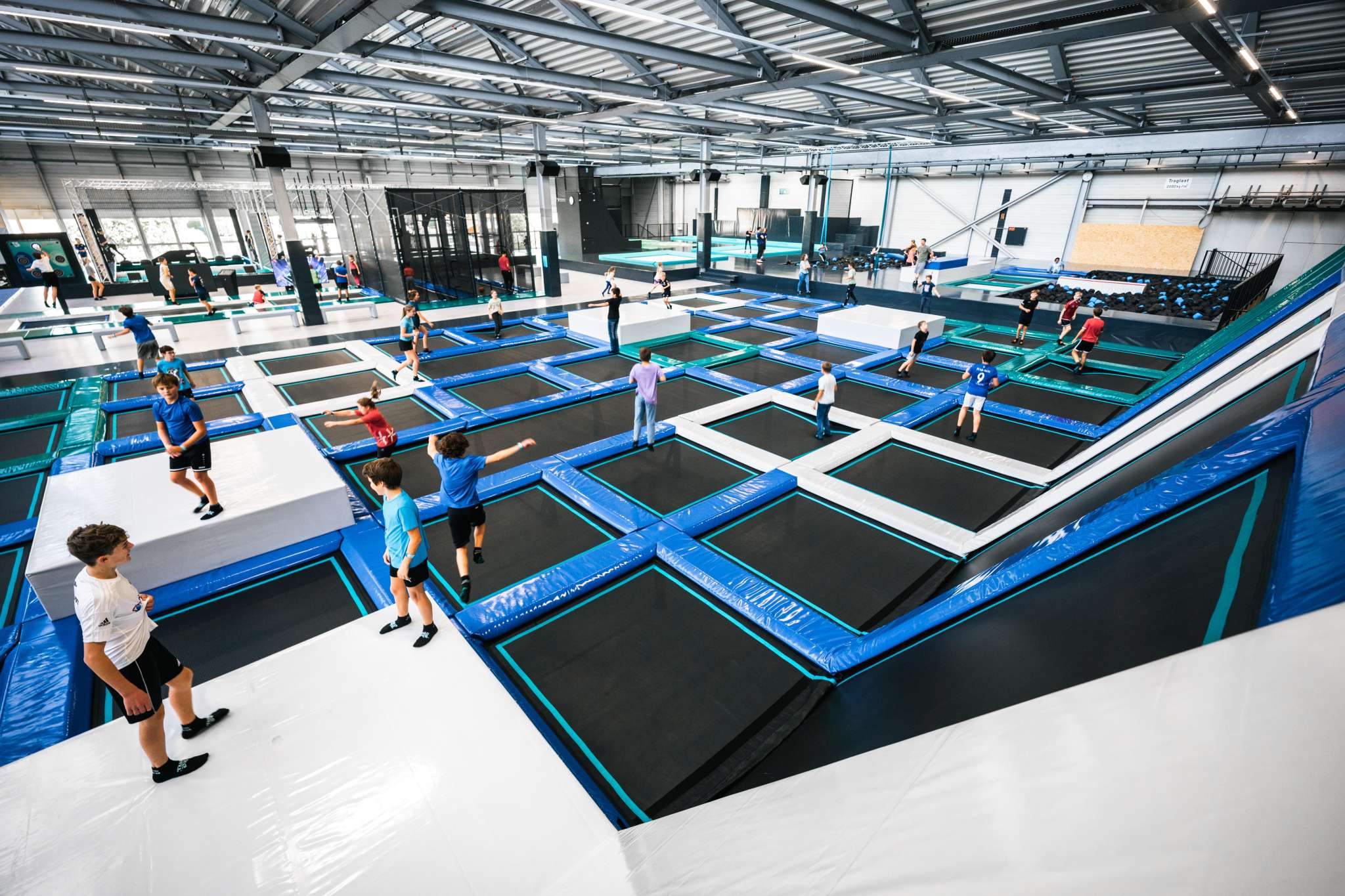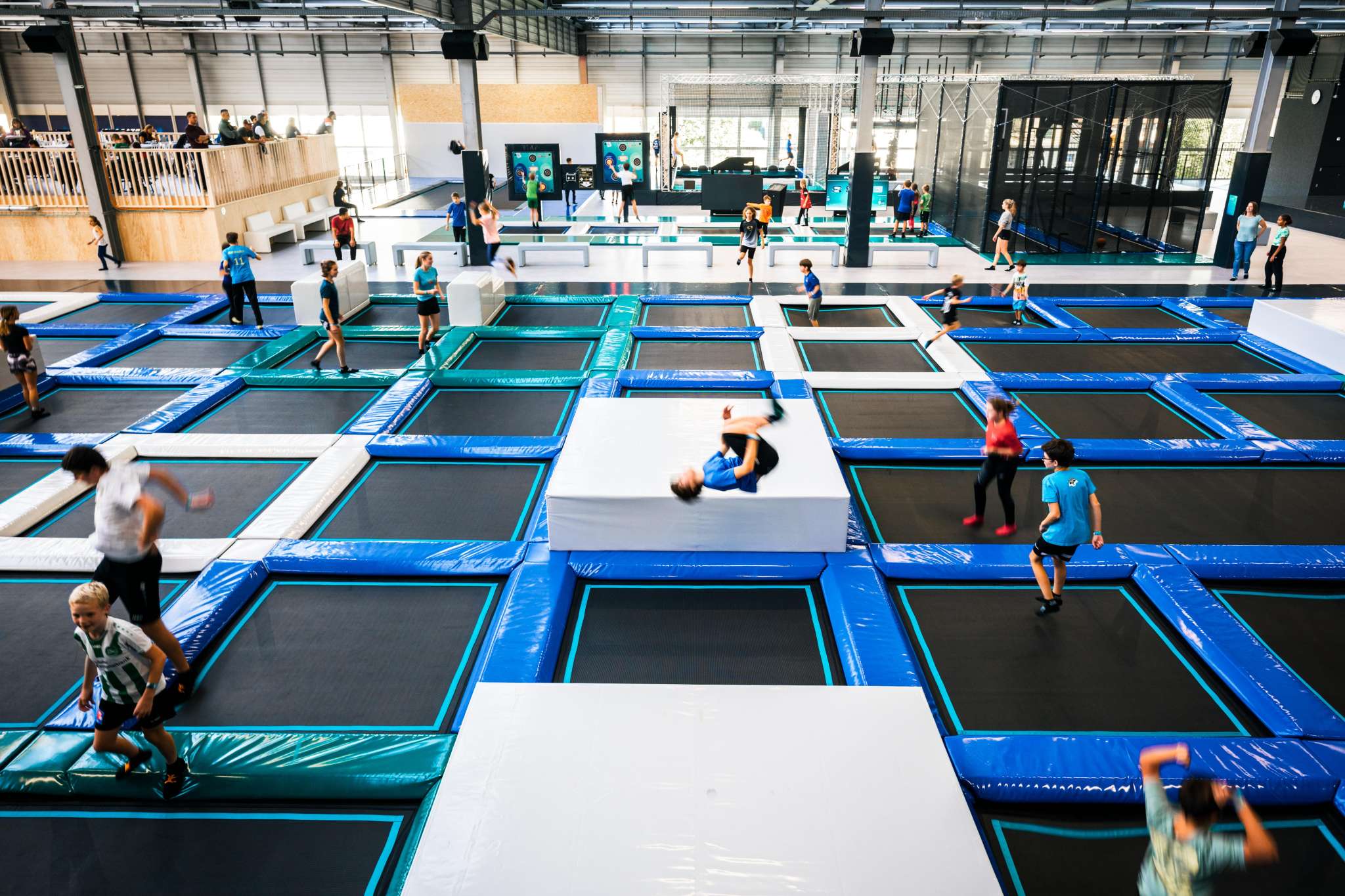 Freue dich auf einen Trampolinpark mit 72 unterschiedlich grossen Trampolinen, springe in die Schnitzelgrube oder perfektioniere deine Sprünge auf unseren High Performance Trampolinen und schiesse Körbe auf NBA-Höhe auf unserem Basketballfeld.