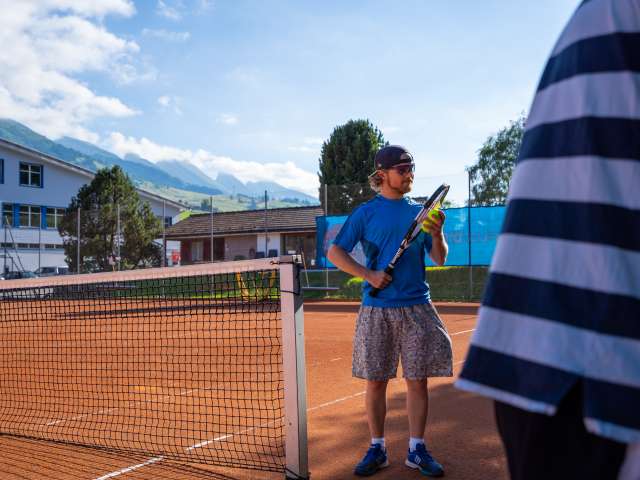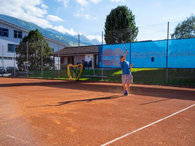 Der Tennisplatz in Wildhaus befindet sich gegenüber vom Curlingzentrum.