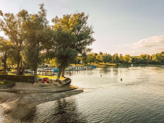 Das smarte Tiny House «hört» dem Gast die Wünsche von den Lippen ab und bietet so einiges: Den Zimmerschlüssel etwa, den gibt's aufs Handy. Möchte man Licht, braucht man es nur laut zu sagen. Wer Fernsehen will, macht das ganz modern über eine App auf dem hauseigenen Tablet, die persönliche Spotify-Liederliste kann über die Lautsprecher im Häuschen abgespielt werden und ein grosser Bildschirm am Kühlschrank wird zum Informationselement für touristische Auskünfte. Der Campingplatz liegt direkt am Rhein und ist idealer Ausgangsort für unzählige Wander- und Velotouren entlang des Wassers. Der Landgasthof überzeugt mit guter Küche und die attraktive Lage für Naturliebhaber lassen jeden Aufenthalt zu wunderbaren Ferien werden. An heissen Sommertagen lockt der campingeigene Badestrand zum Sprung ins kühle Nass.