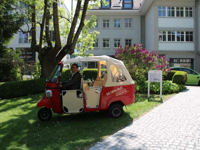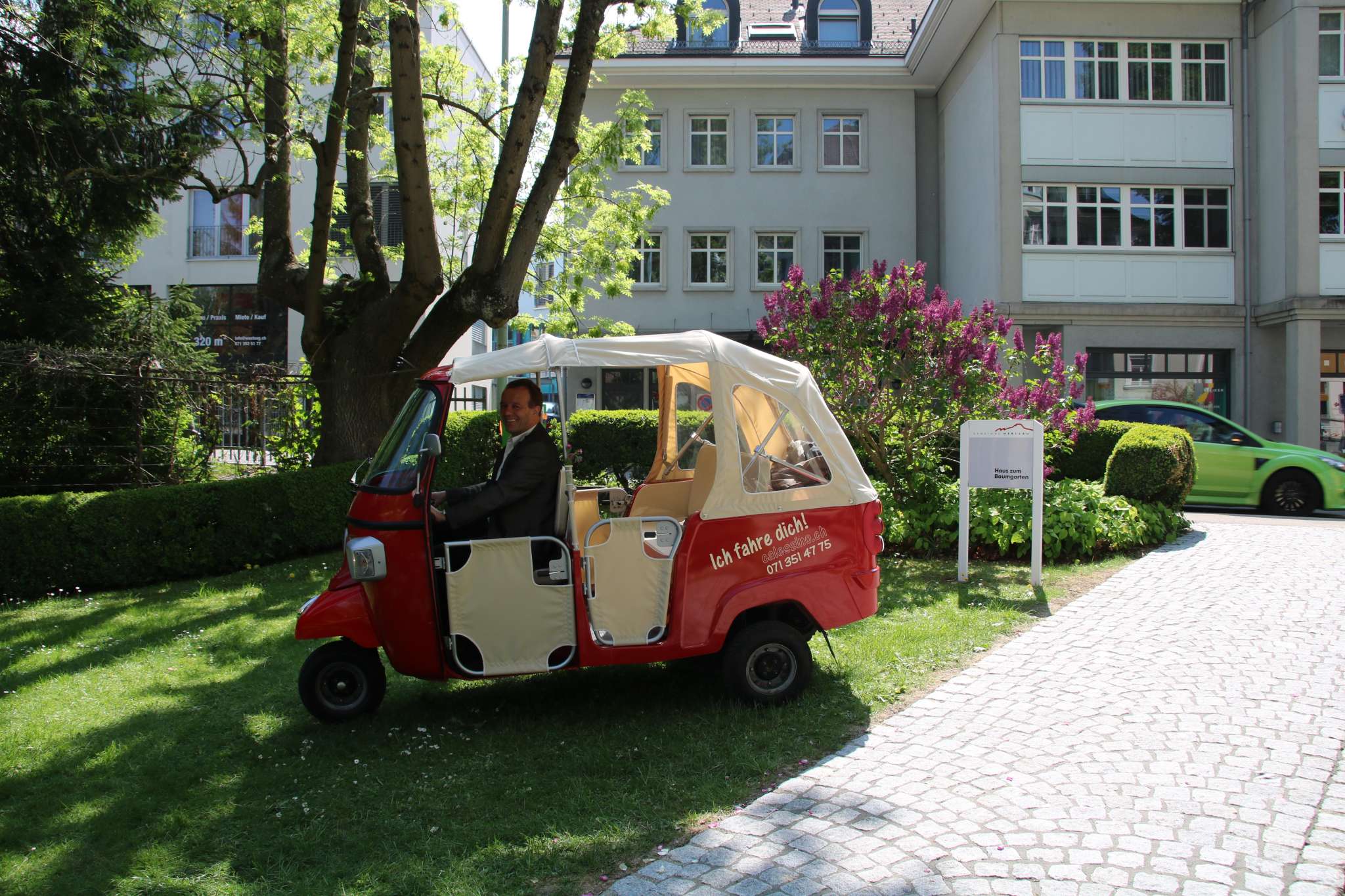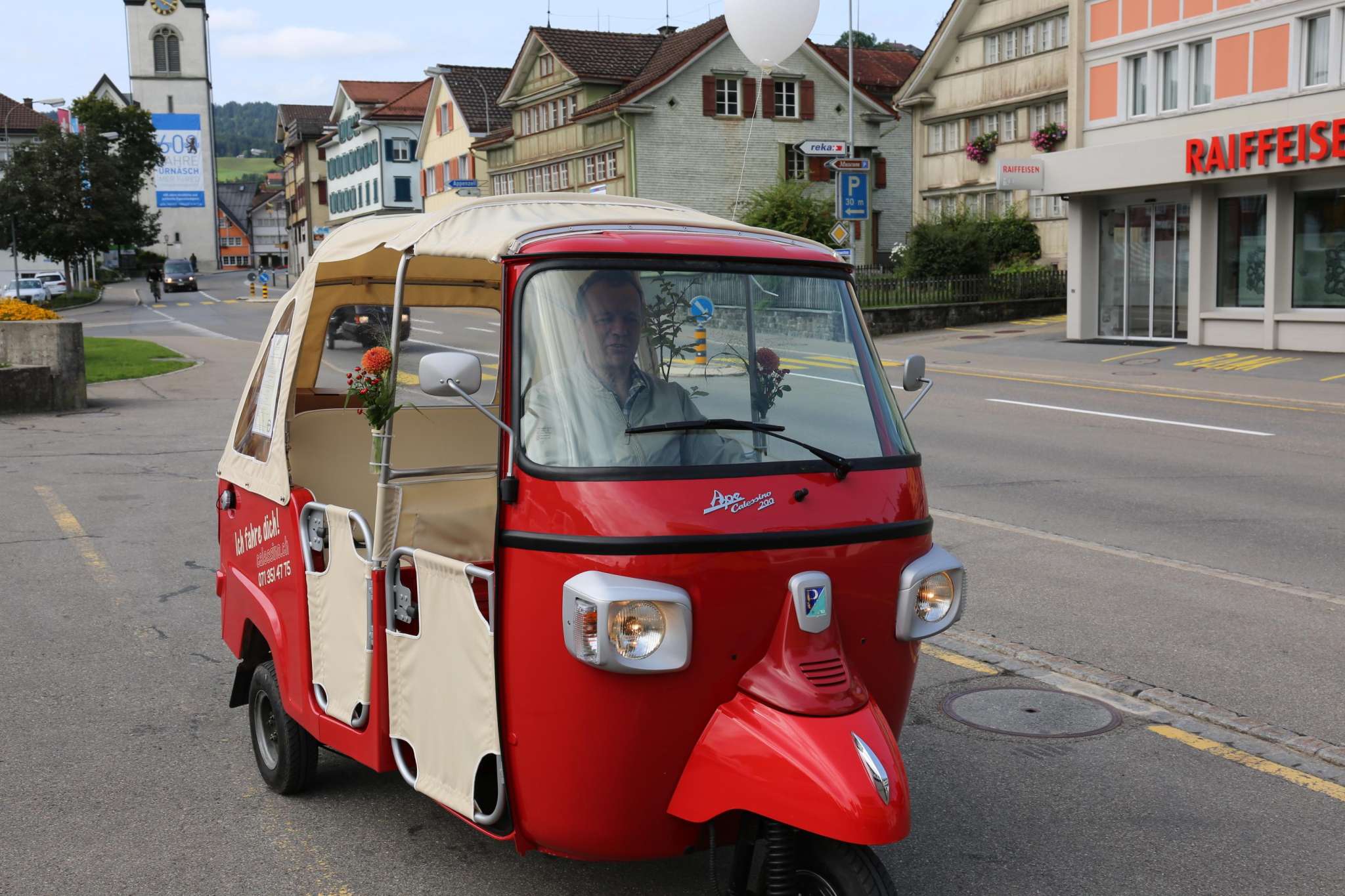 Geniessen Sie das einmalige Strassenfeeling im TukTuk. Bei einer Freiluftfahrt erleben Sie das hügelige Appenzellerland mit all seinen Schönheiten und Sehenswürdigkeiten.