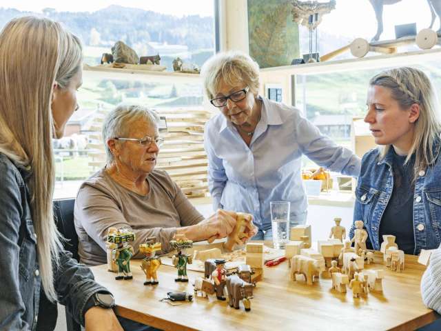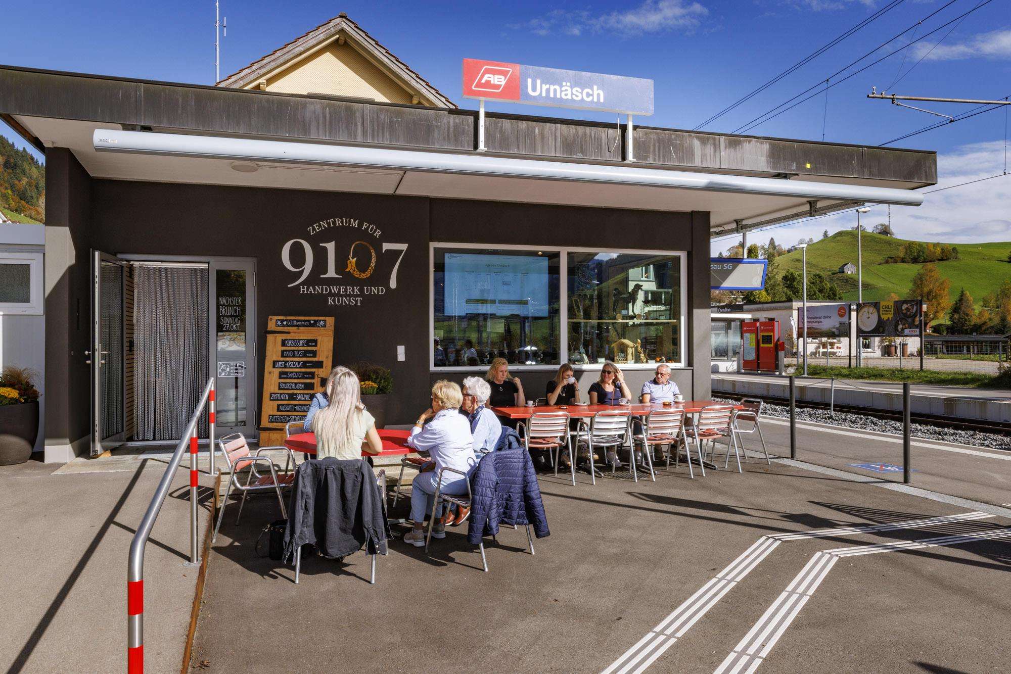 Unser Besucherzentrum direkt im Bahnhof Urnäsch beherbergt ein Bistro und einen Laden. Die vielen handwerklichen Produkte und Kunstwerke unserer Vereinsmitglieder werden darin präsentiert und können direkt vor Ort gekauft werden.