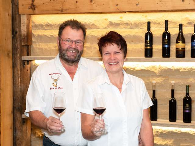 WEIN & WILD Der Name ist Programm. Auf Wunsch führen wir gerne eine Degustation unserer Weine oder einen Rebspaziergang mit Besuch der Hirsche durch.