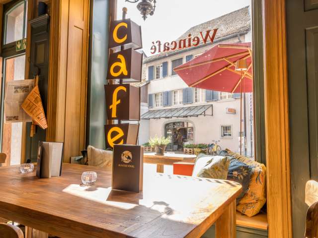 Das Weincafé Bunter Vogel, eingenistet im charmanten Haus zum Falken, ist eine zauberhafte Ergänzung zum historischen Gasthaus. Der liebevoll gestaltete Gastraum lädt ein, die Hektik des Alltags hinter sich zu lassen, und bietet den idealen Ort zum Verweilen, Geniessen und Wiederkehren. Gastgeber Bruno Agostinho sorgt dafür, dass Sie sich rundum wohlfühlen: Mit einer feinen Auswahl an regionalen Weinen, exquisiten Drinks, kleinen Häppchen sowie Kaffee und Kuchen ist für jeden Geschmack etwas dabei.