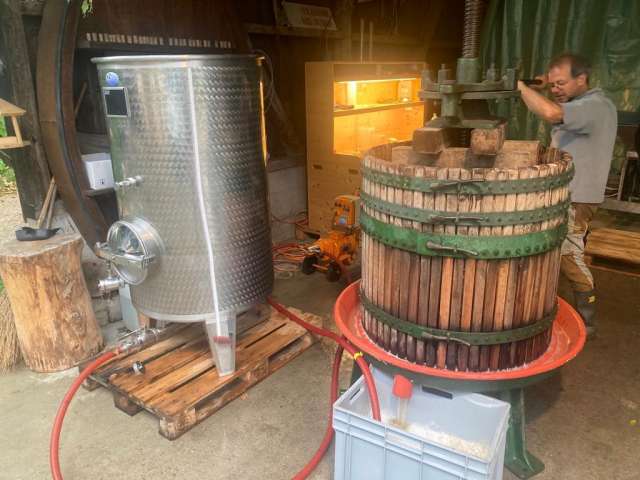 Er hat die Idee mit einem Cidre aus Äpfeln von Hochstammbäumen angestossen und die schäumenden Pet Nat beim Rosé und dem Sauvignac, einer neuen Weissweinsorte in Bio Qualität.