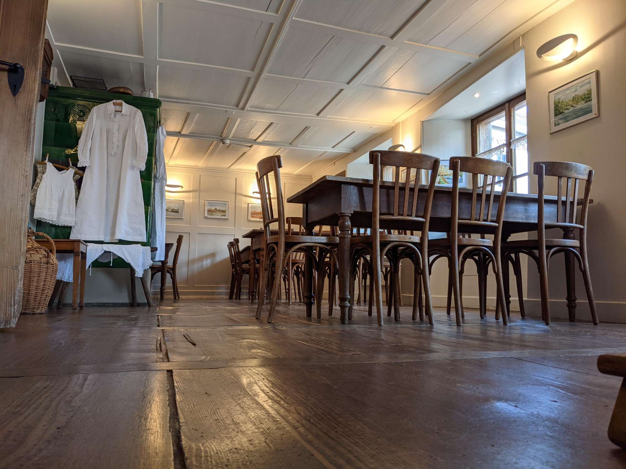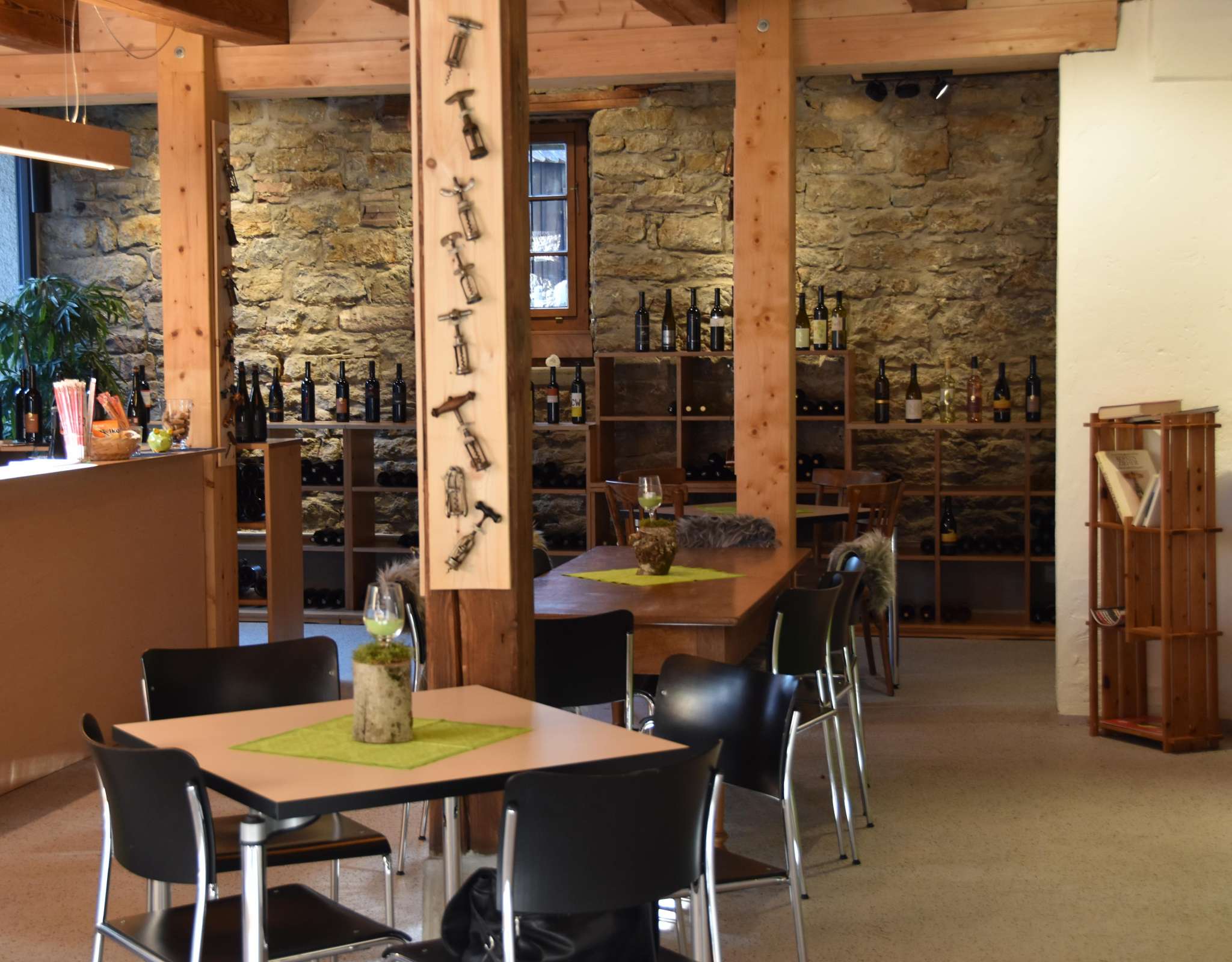 In unserer Vinothek warten 55 Weine von 25 Weingütern aus dem Schaffhauser Blauburgunderland – zum Degustieren und direkt Kaufen. In der erhaltenen Gaststube geniesst du Weine, kleine Imbisse und hausgekochte Menüs wie den beliebten Hackbraten sowie frische Desserts. Ob zu zweit oder in der Gruppe: Es wird herzlich und entspannt. Gruppen ab 12 Personen empfangen wir auch ausserhalb der regulären Zeiten.