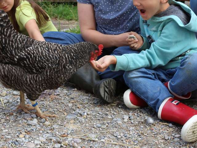 - Mitmachen im Stall: Wer Lust hat, kann jeweils abends beim Füttern und Versorgen der Tiere helfen