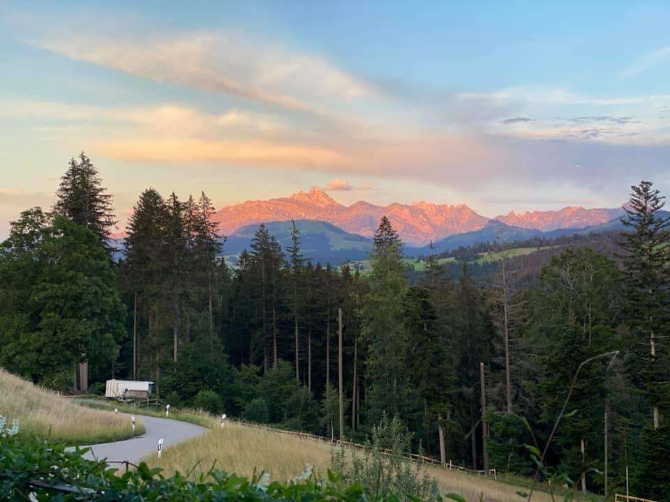 Hoch über Wattwil, auf dem Hügel mit grandioser Sicht auf Alpstein und Churfirsten, befindet sich eine Campingwiese für Wohnmobile oder Zelt.