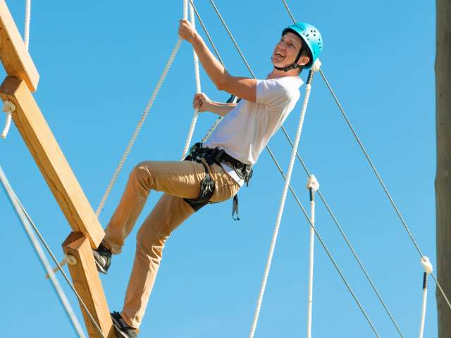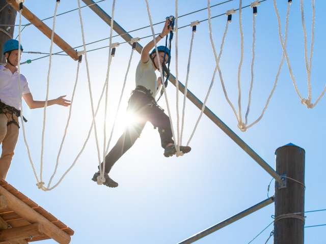 Schwinge dich wie Tarzan auf fünf verschiedenen Routen - von leicht bis anspruchsvoll - durch den Zipline-Park.
