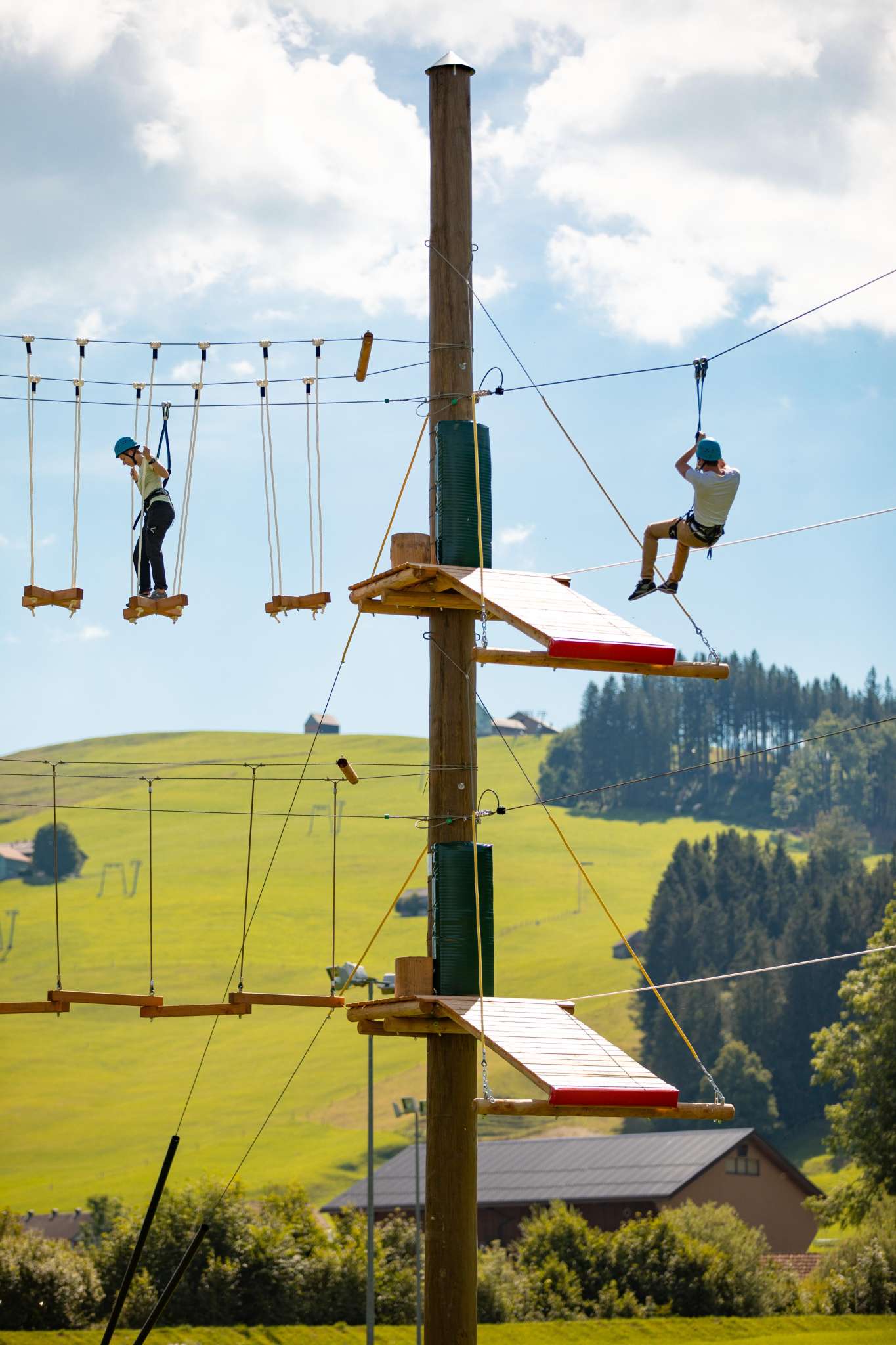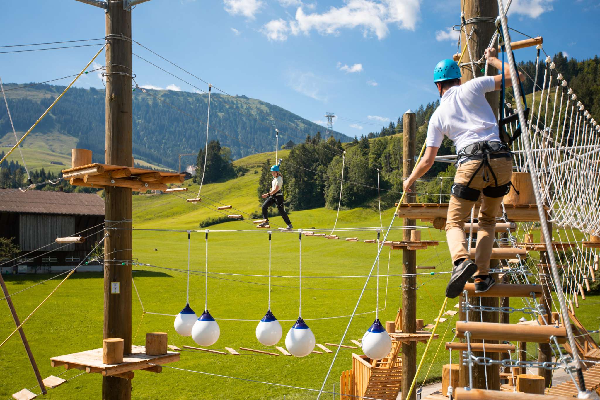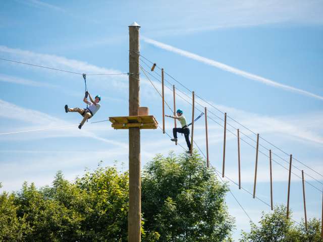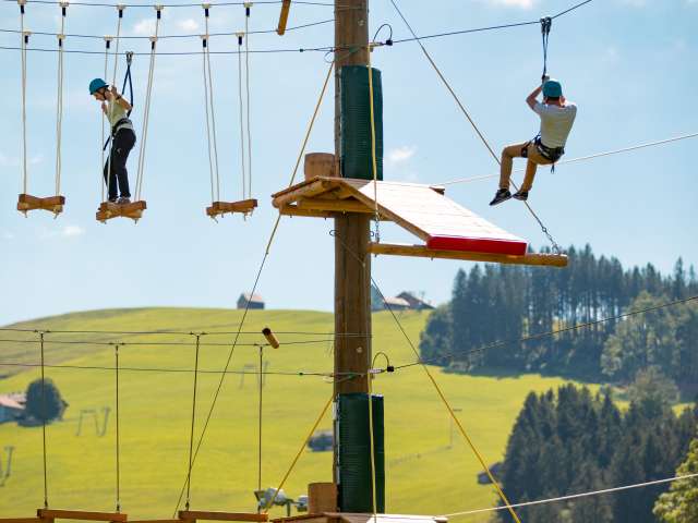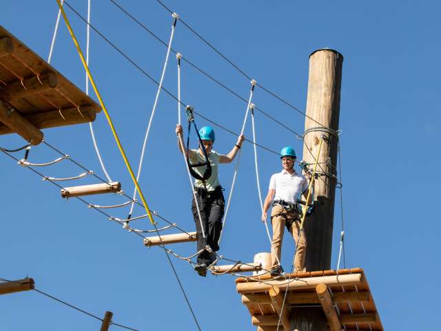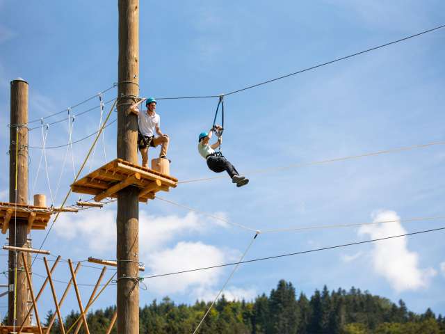Nervenkitzel in luftigen Höhen für Gross und Klein: Neben dem integrierten Seilpark sorgen 25 Ziplines mit insgesamt 1'210 Meter Länge für Abwechslung und rasanten Spass.