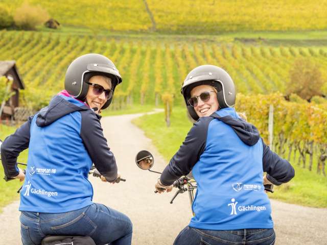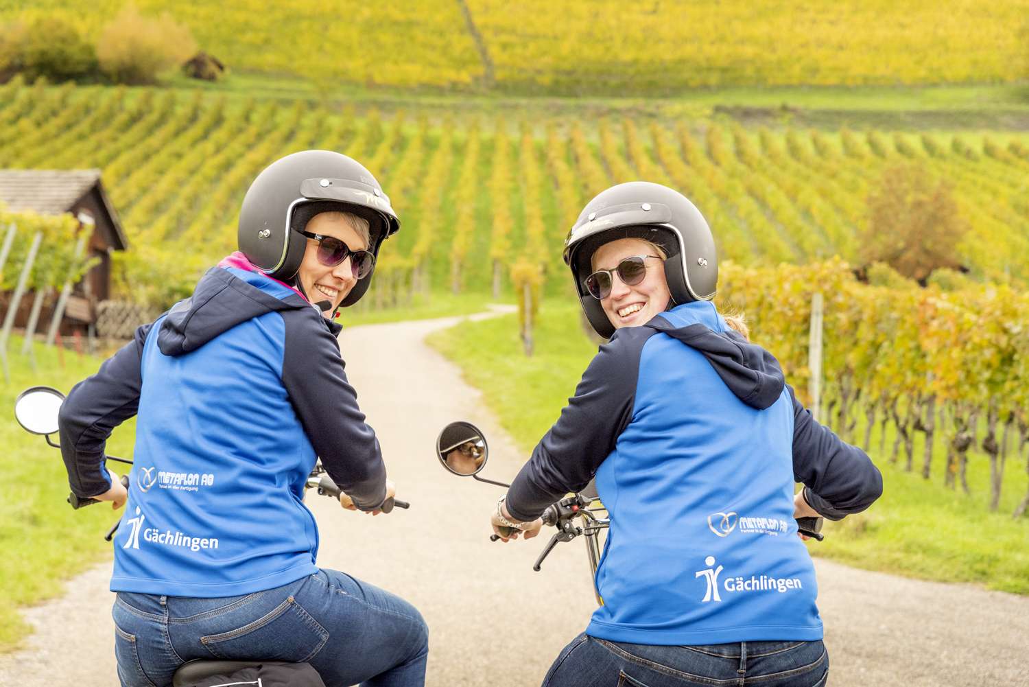 At Mofun in Schaffhausen, you can hire mopeds for a tour with friends, a club outing, bachelor party or company event. You are guaranteed to reminisce - who doesn't like to think back to their youth, when a moped was the first sign of freedom? Today, Mofun mopeds take you on an eventful trip through the Schaffhausen region, along the Rhine and the vineyards. You will be travelling on the legendary Pony mopeds, which have been manufactured in Feuerthalen since 1961. The mopeds have only made the leap across the Rhine to Mofun and are still travelling in their home region. Mofun provides support with route selection, organisation of a supporting programme or guided tours. The complete equipment such as helmet, mobile phone holder, route planner, child seat and emergency kit is provided. Should a problem occur, an on-call service is also part of the offer.