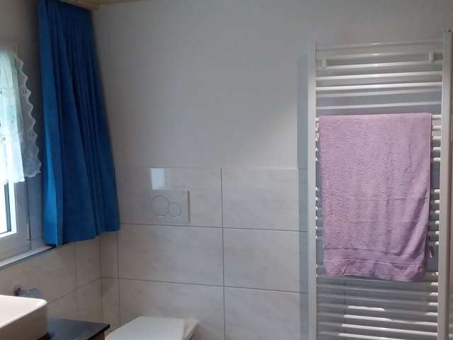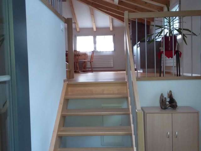 The wonderful, newly renovated 2.5-room apartment offers a cosy living/dining room with a kitchen, which is equipped with a dishwasher and refrigerator, and stocked with oil, vinegar, pepper and salt. The double bed in the bedroom and separate sofa bed on the mezzanine level sleep 2–3 people. Bed linen, kitchen linen and towels are provided.
