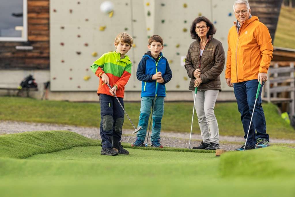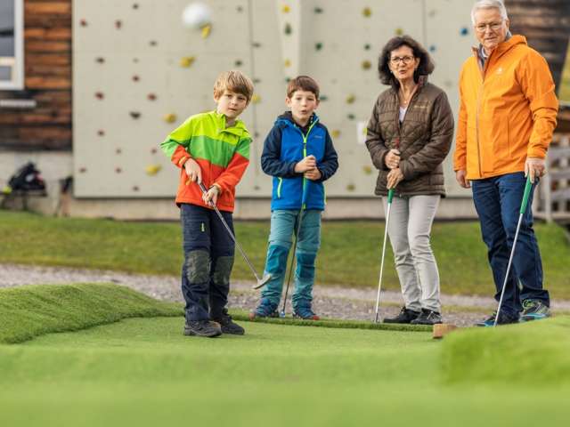 The varied Adventure Golf course is located right next to the Bergrestaurant Prodalp. No two courses are the same here. On the 12-hole course, grandparents, parents and children alike play their way through the winding "Munggä-Bau", follow the fascinating "Rohan Rothirsch Adventure Trail", climb the “Spitzmeilen” and shoot the minigolf ball down the legendary "FLOOMZER".