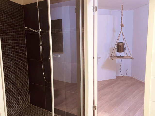 The AirBnBar also offers a fully equipped kitchen, a dining area and a bathroom with toilet, spacious shower and washing machine & tumbler.