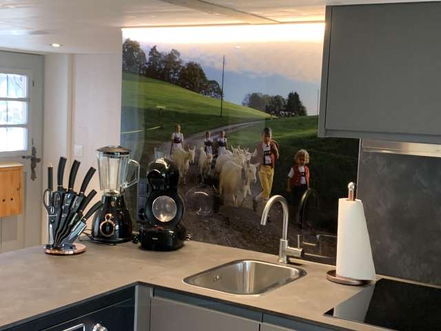 The small but classy apartment with separate entrance is located in our historic Appenzell house from 1750, right in the centre of the most beautiful village in Switzerland. From the apartment you can enjoy splendid views of Schwellbrunn. It is equipped with washing machine, tumble dryer and TV. Free internet and parking are available. The apartment can accommodate up to 4 people.