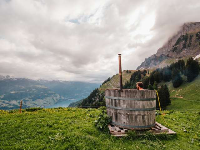 In our cottage kitchen we prepare simple and traditional menus. There are various grilled dishes, salads, Aelplermaccaronen, tomato spaghetti or simply something small: cheese, salsiz, bacon and bread. For overnight stays there are 4 double rooms and a dormitory for 20 people. To relax after a nice hike, we are happy to heat up the Hotpot by appointment.