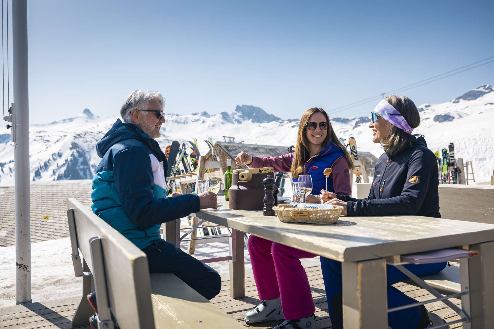 The alpine restaurant Panüöl at Flumserberg offers a peaceful atmosphere with a cozy sun terrace and impressive mountain views. It is accessible on foot and offers accommodation both in the restaurant and in the alpine hut.