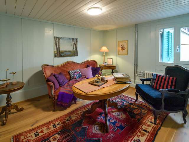 The Anna Schmid Puurehuus, built in 1670 and recently completely restored, marks the entrance to the old village centre of Schaffhausen-Buchthalen. Our charming holiday home is furnished for 5 people. A small garden belongs to it! Arrive and be at home!