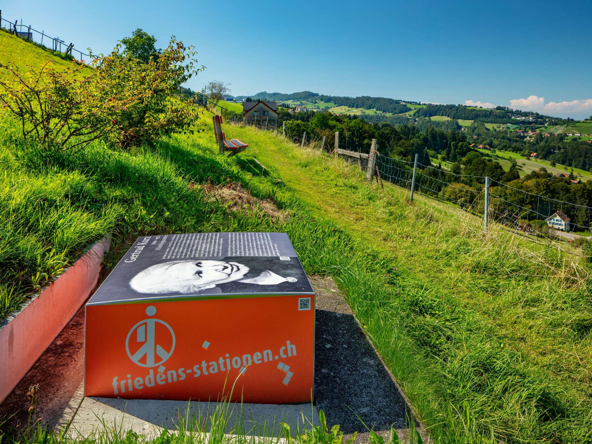 The Appenzell Peace Stations cordially invite you on a voyage of discovery through the Appenzeller Vorderland. They show the life’s work of important Swiss humanitarians: Jakob Künzler, Carl Lutz, Margrit Besmer and Willi Kobe, Paul Vogt, Gertrud Kurz, Catharina Sturzenegger, Theodosius Florentini, Carl “Bö” Böckli and Henry Dunant. Each station is dedicated to the life and work of one of these individuals.