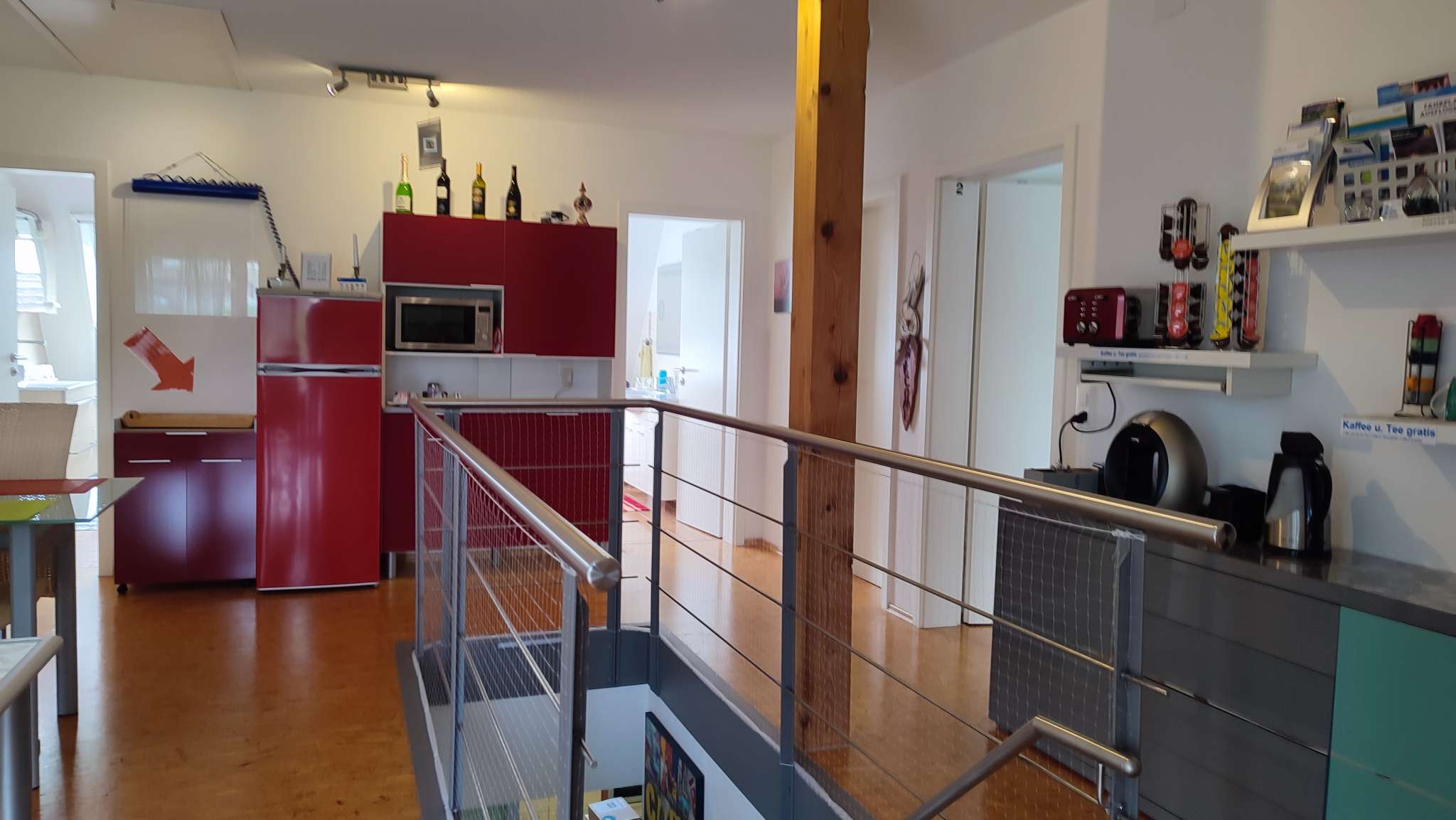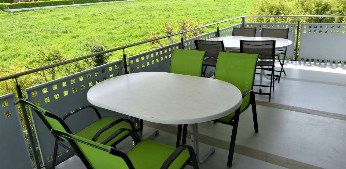 All rooms surround the open gallery (28sqm), which is designed as a breakfast and common room. From here you can also access the very large balcony, shaded by an awning over the entire length of 6.25m. The accommodation is also ideal for small groups, as all rooms are on one floor.