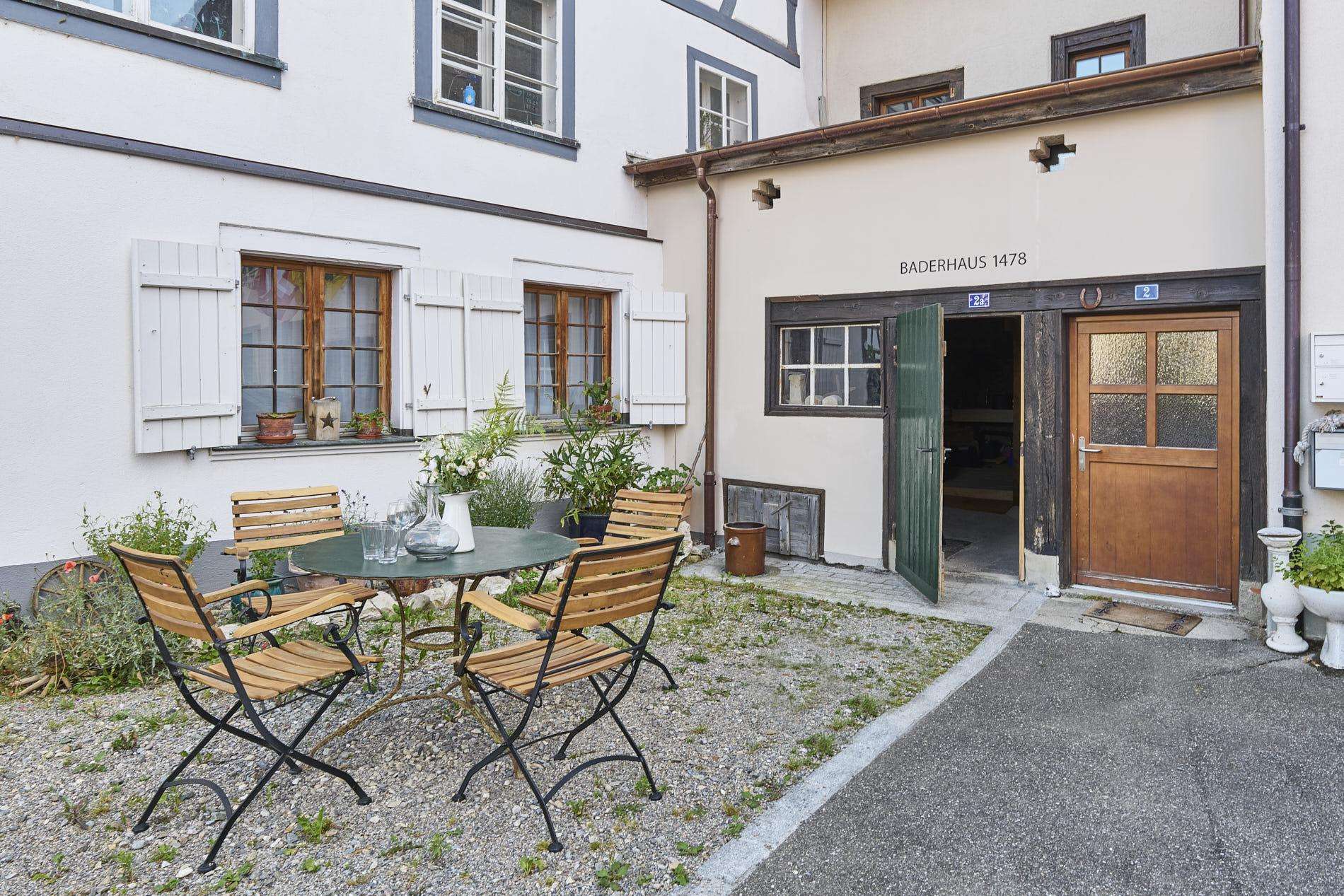 Despite the dense development of the old town, the Baderhaus offers an inviting outdoor space from which you can watch the hustle and bustle in the Hintergasse and at the Untere Brunnen.