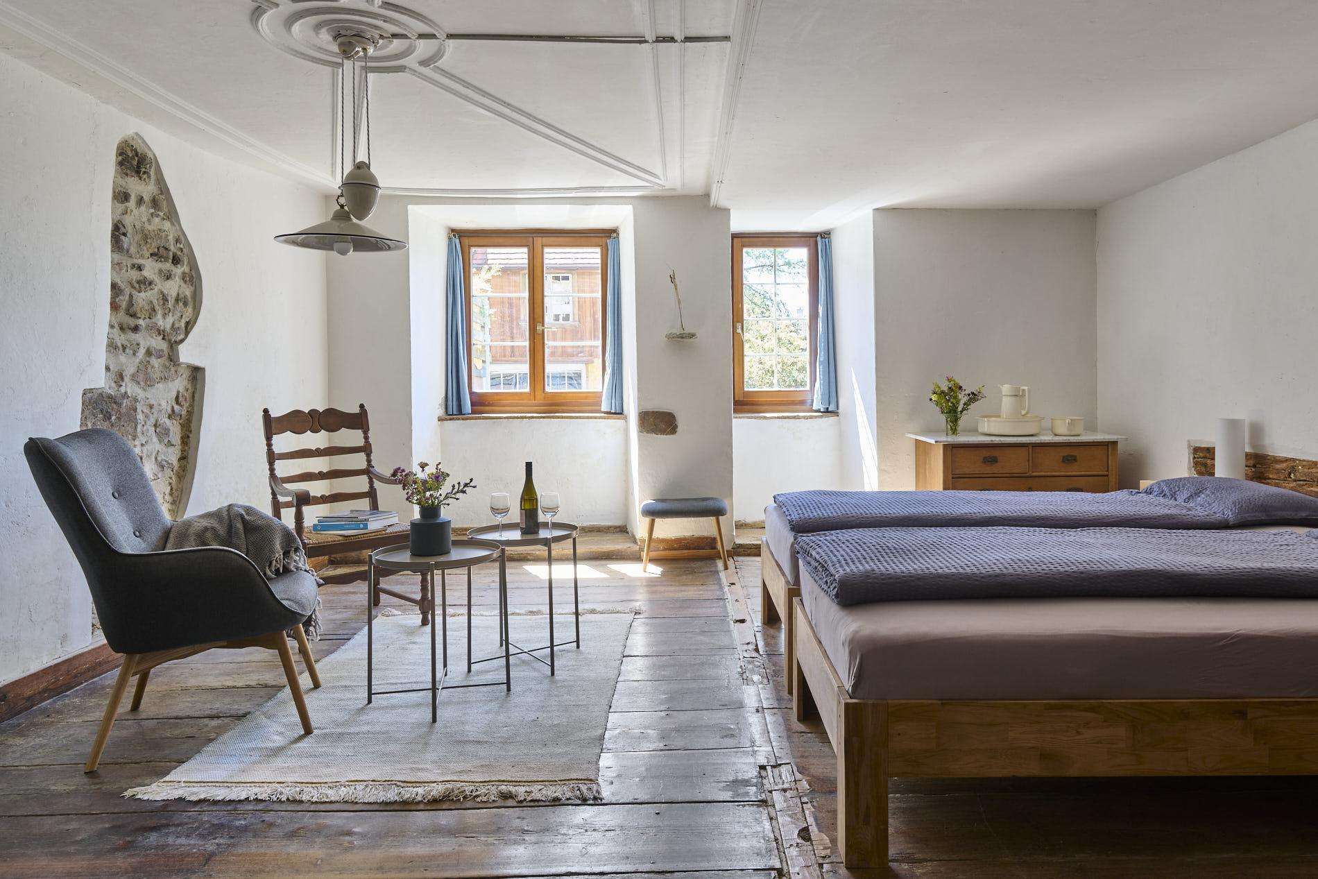 The history of the Baderhaus runs through the centuries, during which the house was extended and remodelled, and today's interlocking room and ownership structures bear witness to this constant change. In 2018, the then vacant part of the house was acquired by the current owner, an architect living in the city. He saved the Baderhaus from decay and, with a great deal of commitment, has given it a sustainable future. Thanks to the rental of the Baderhaus by the foundation Ferien im Baudenkmal, the house can be experienced by the public and its history told.